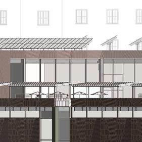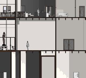 families so the tenants could build their own support systems within the complex’s community. The programming and services in the complex center around four main facets of health: mental, physical, social, and spiritual. All of the services located on the ground floor are available to the residents and general public, because they provide amenities that are lacking in the vicinity.