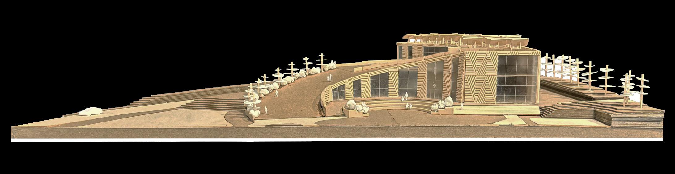 Emergence can be defined as the process of coming into view after being exposed or being concealed. This museum is of the earth, just as its artifacts were and are, and as its inhabitants were and are. The semi-circular, sloping form of the building aims to create a natural circulation between the site and the building, encouraging users to engage with indoor and outdoor spaces. To further relate our building’s skin to the ground, our precast panels feature a layered design modeled after the Earth’s layers.