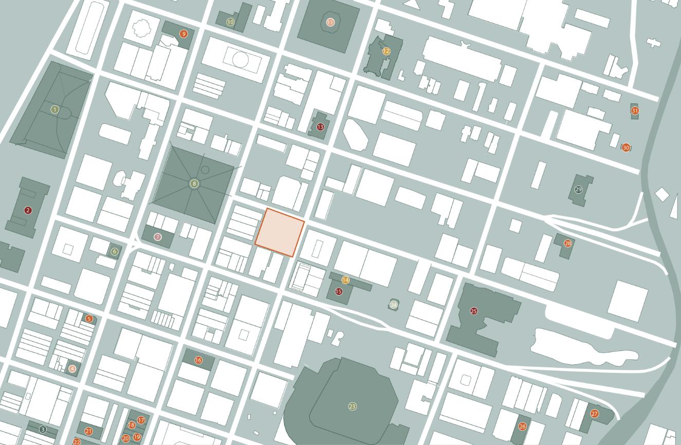 The project site is next door to the Mill at MSU, which is a historic building used for conferences and gatherings in Starkville. The cultural campus aims to draw people over from the university and serve as a connector between MSU and the city. We chose to embed the museum into the landscape to further connect the inhabitants and artifacts to place, which is a unifying characteristic for the museum.
