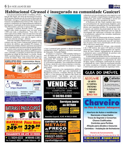 A Prefeitura de São Paulo, por meio da Secretaria Executiva do Programa Mananciais da Secretaria Municipal de Habitação, entregou 32 apartamentos do Residencial Girassol, na manhã de terça-feira (27/06). Página 6