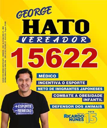 incansavelmente, ao lado do Prefeito Ricardo Nunes, para levar melhorias a rede pública de saúde. Filho do saudoso deputado Jooji Hato e neto de japoneses, defende as tradições de cultura Nikkei, buscando fortalecer o intercâmbio cultural entre os dois povos, apoiando eventos e projetos assistenciais da comunidade.