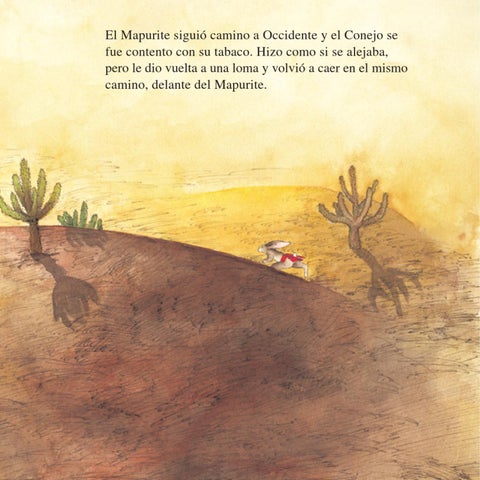 El Mapurite sigui贸 camino a Occidente y el Conejo se fue contento con su tabaco. Hizo como si se alejaba, pero le dio vuelta a una loma y volvi贸 a caer en el mismo camino, delante del Mapurite.