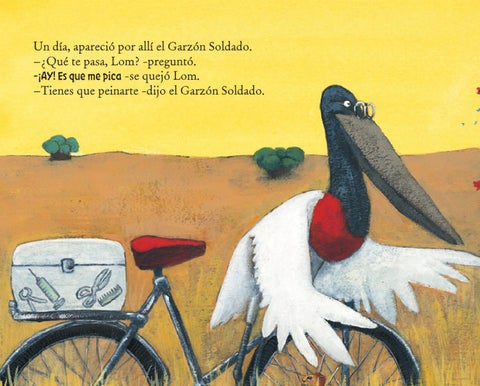 Un día, apareció por allí el Garzón Soldado. –¿Qué te pasa, Lom? -preguntó. –¡AY! Es que me pica -se quejó Lom. –Tienes que peinarte -dijo el Garzón Soldado.