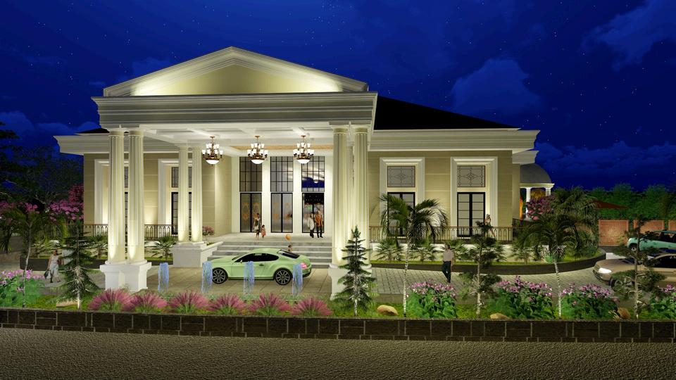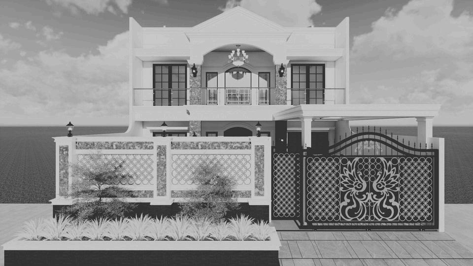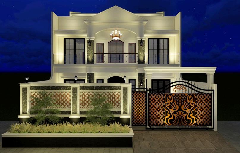 Desain bangunan rumah tinggal dibuat dengan desain klasik modern yang dipadukan dengan art modelpadaornamendanelemenfasadrumah.