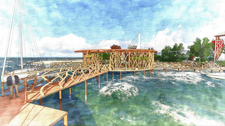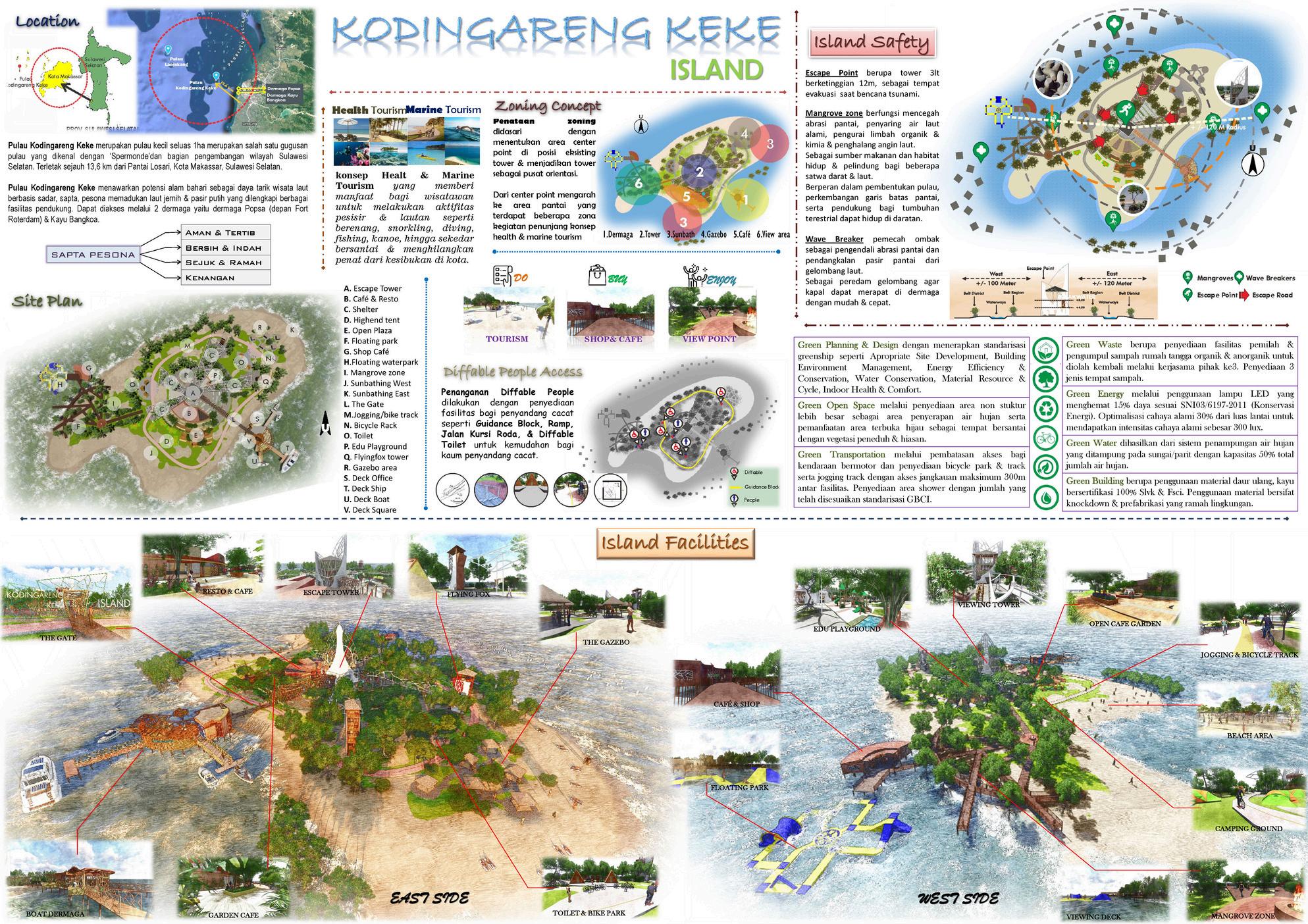 Konsep desain pulau wisata Kodingareng & Lanjukang yang berbasis wisata dengan daya dukung pengelolahan lingkungan berkelanjutan / suistanability serta evakuasi/mitigasi terhadap bencana dan abrasi.