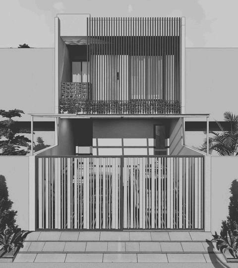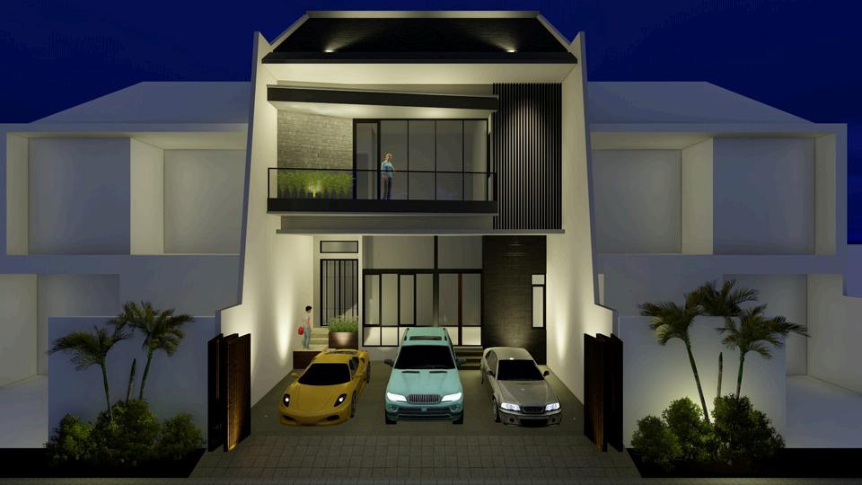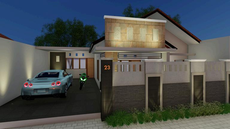 Desain rumah memiliki perpaduan unsur simple modern & tropis menyesuaikan dengan kondisi lingkukngansekitarnya. Didominasi warna putih memberikan kesan elegan, clean & simple, dan memberikan kesan luas di setiap area. Perpaduan permainan elemen kisi2 & loster selain sebagai unsur estetika pada fasad,berfungsisebagaiperedamsinarmatahari& menjaga privasi bukaan ruang pada tampak muka bangunan.