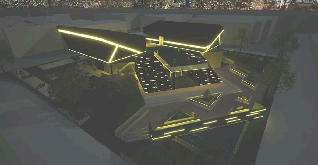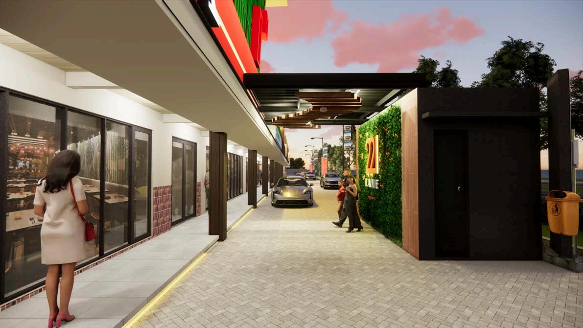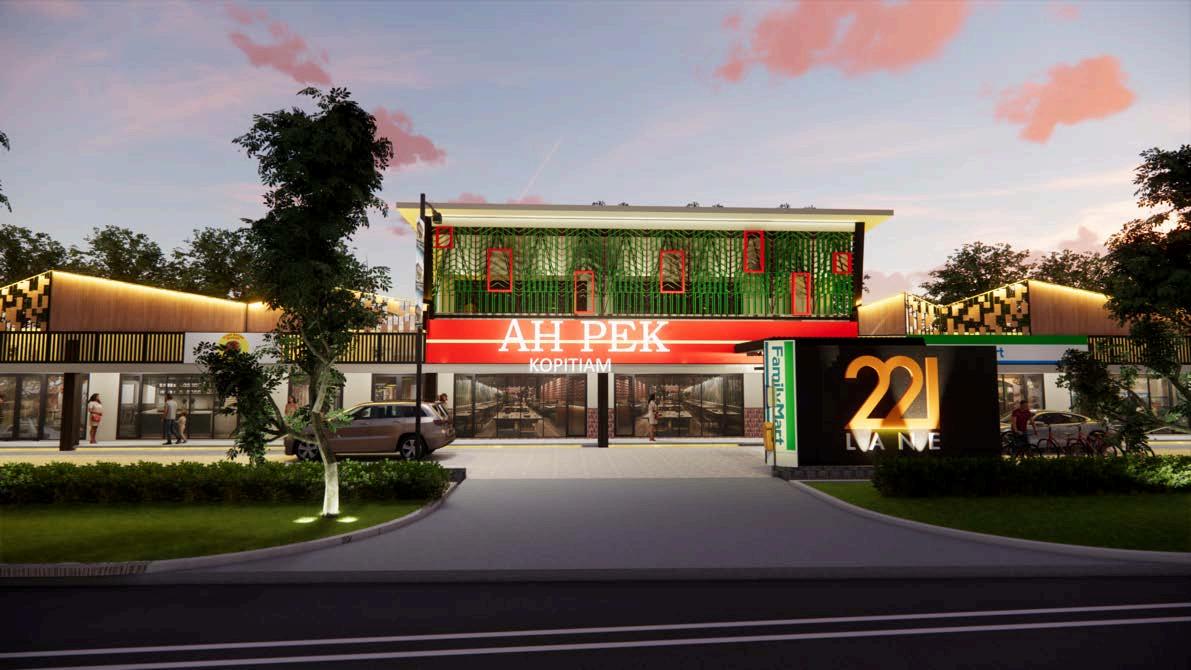 Desain bangunan komersial yang memiliki luas tanah +- 5000m2, dengan total luas bangunan +1400m2.Didesaindengantemayangsamayaitumenggunakanfacadepermainankalsiplank,agarsetiap tenantmemilikikesamaandarisegiestetika.221LANEmemilikilebihdari10tenant.