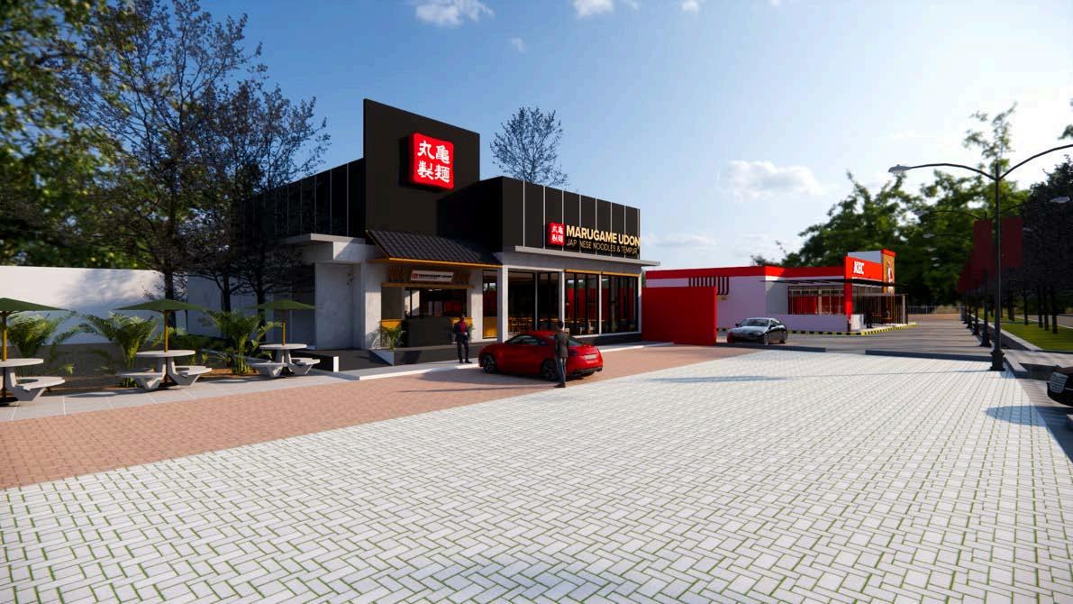 Desain bangunan komersial yang memiliki luas tanah +- 12000m2, Mendesain bangunan Marugame Udon yang memiliki luas tanah 350m2 dengan luas bangunan 270m2. Konsep baru yang dihadirkan menampilkan dekorasi khas Jepang yang lebih otentik dan menghadirkan lebih banyak spot Instagramableuntuksemakinmemanjakanparapengunjung.