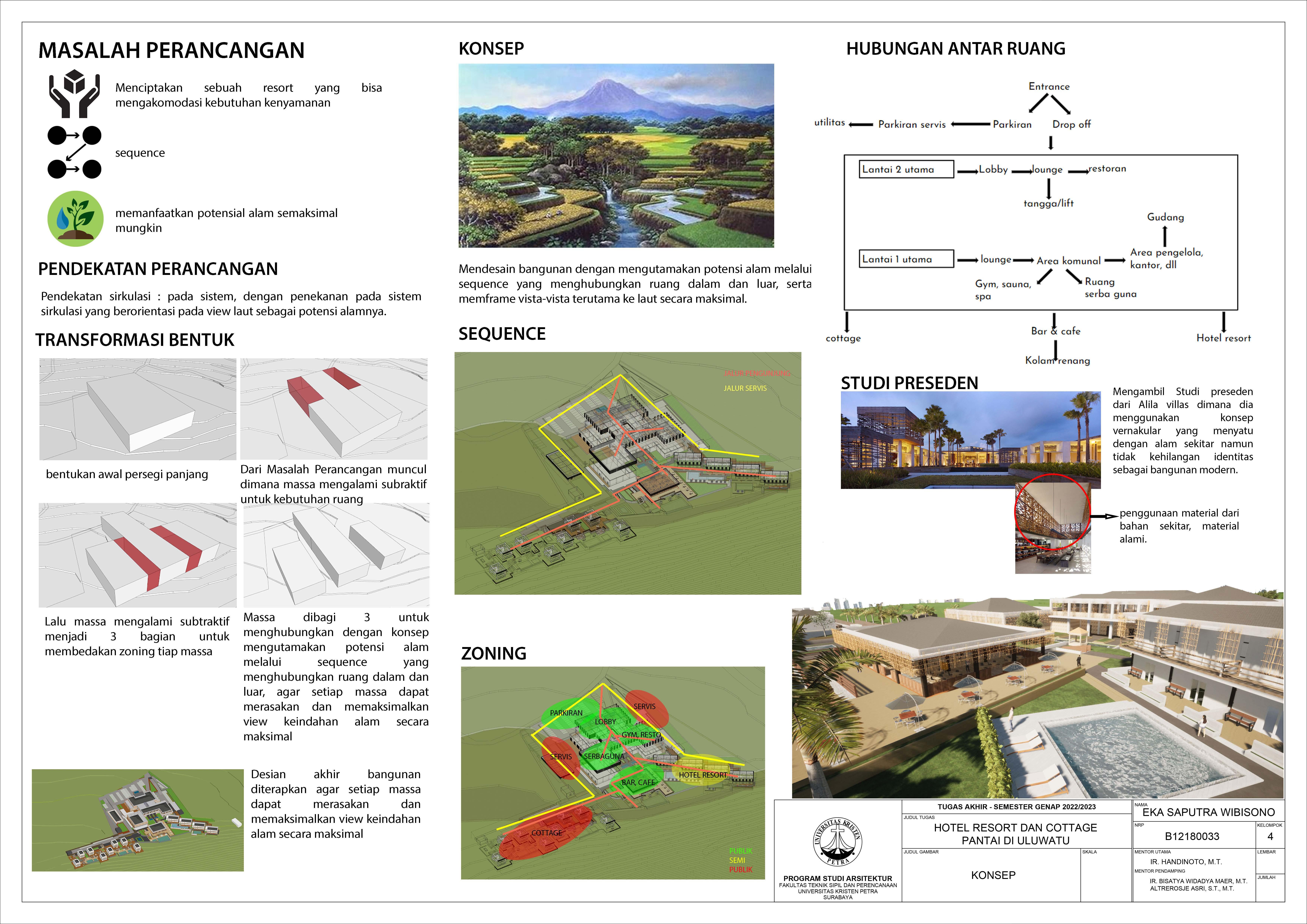 PROGRAMSTUDIARSITEKTUR FAKULTASTEKNIKSIPILDANPERENCANAAN UNIVERSITASKRISTENPETRA SURABAYA JUDULTUGAS MENTORUTAMA JUDULGAMBAR NAMA NRP KELOMPOK MENTORPENDAMPING LEMBAR JUMLAH SKALA HOTELRESORTDANCOTTAGE PANTAIDIULUWATU EKASAPUTRAWIBISONO B121800334