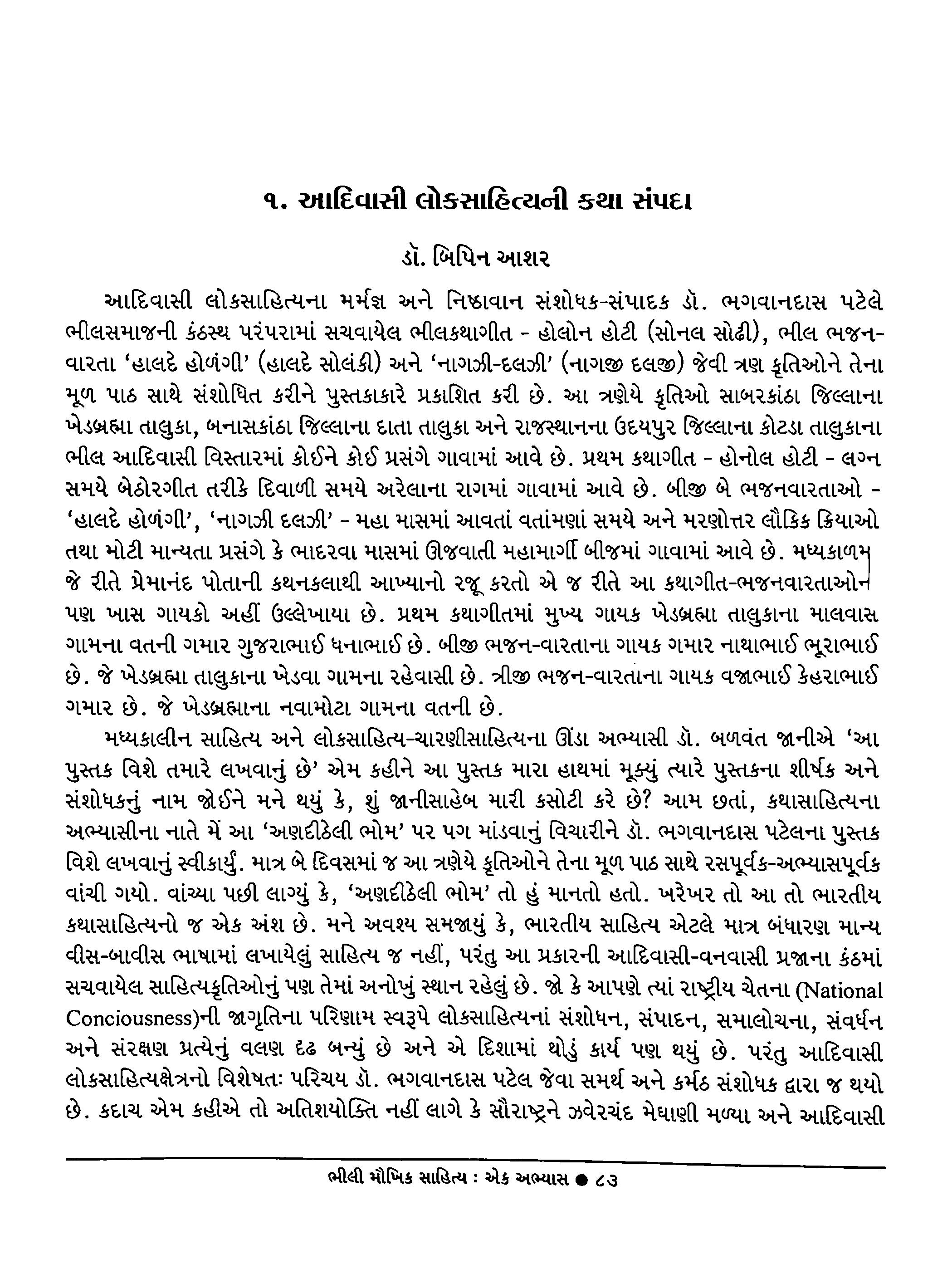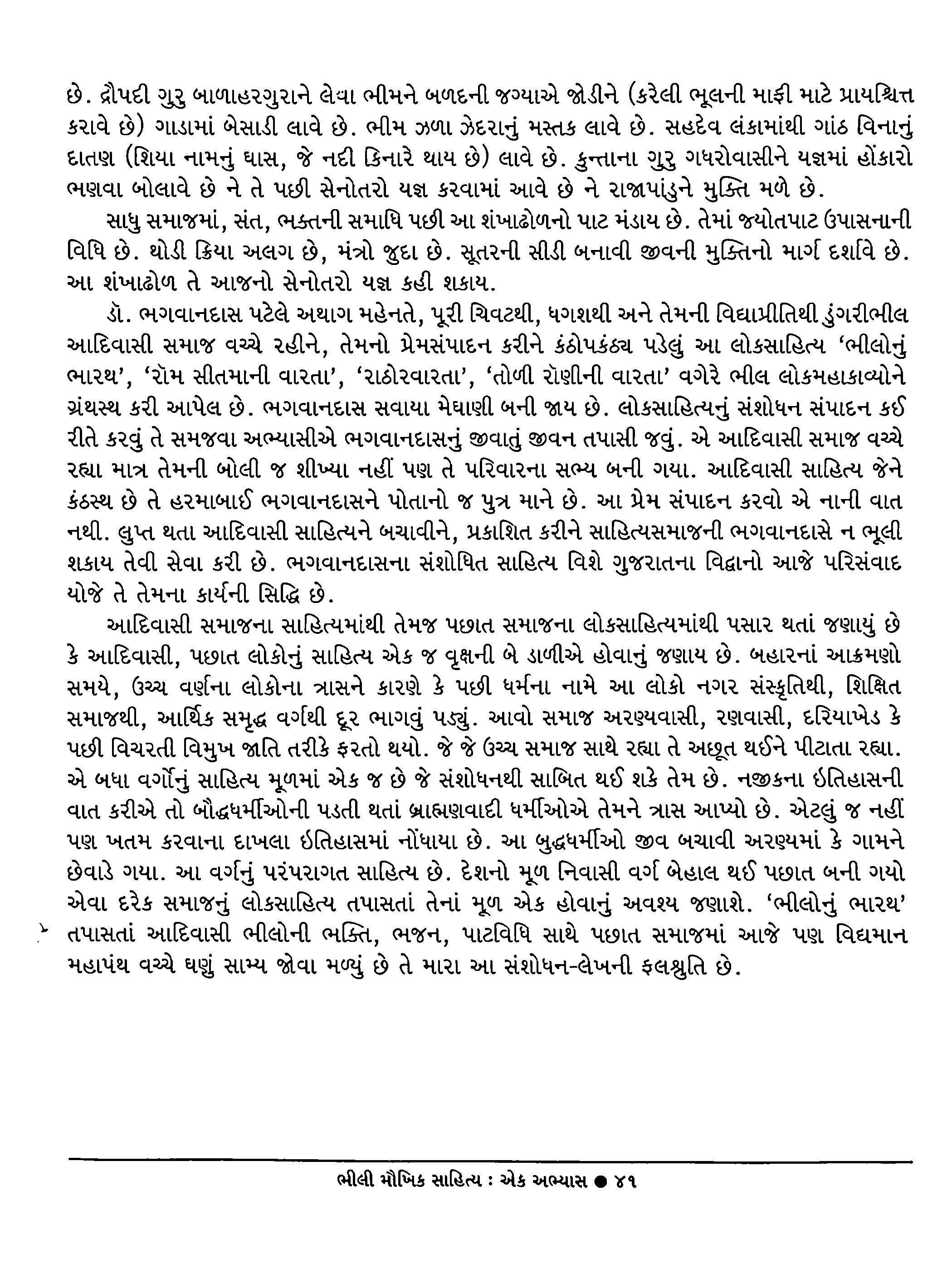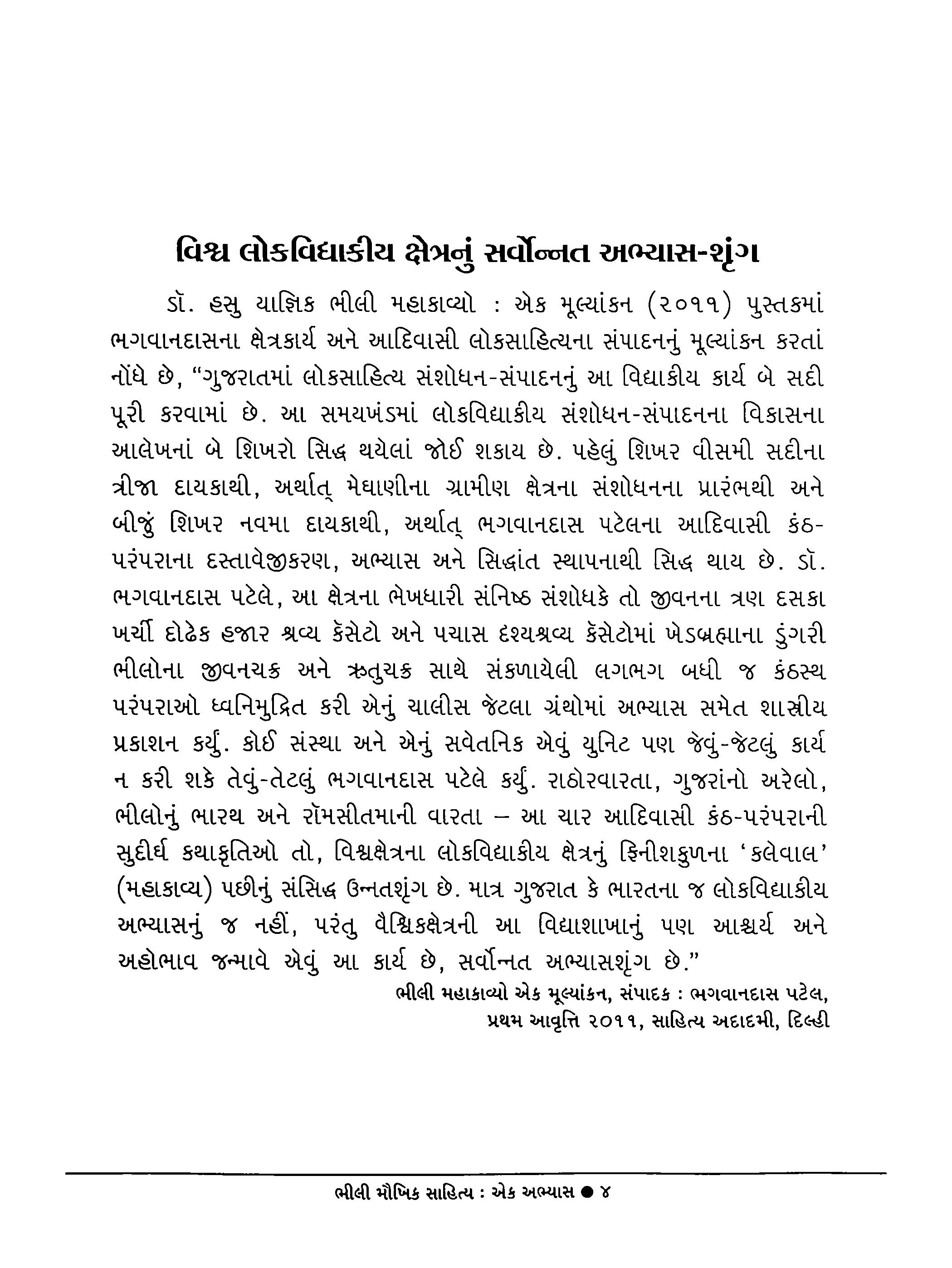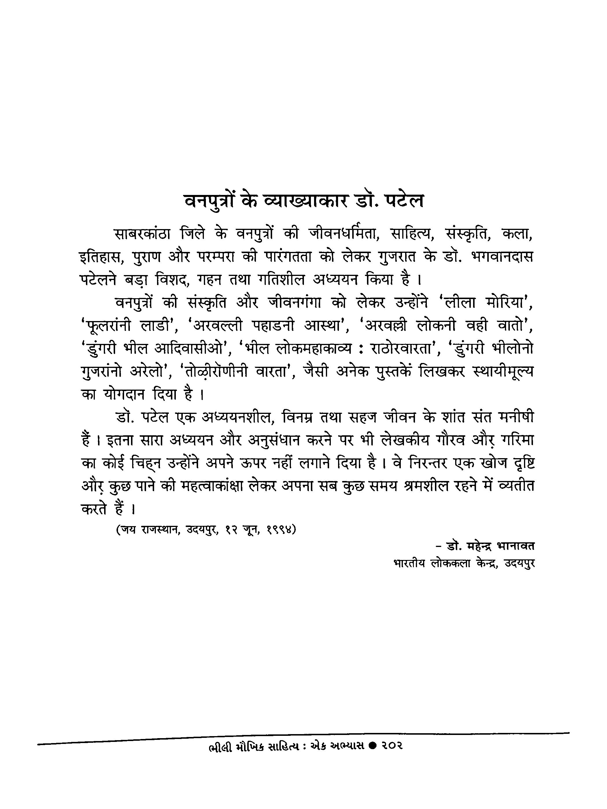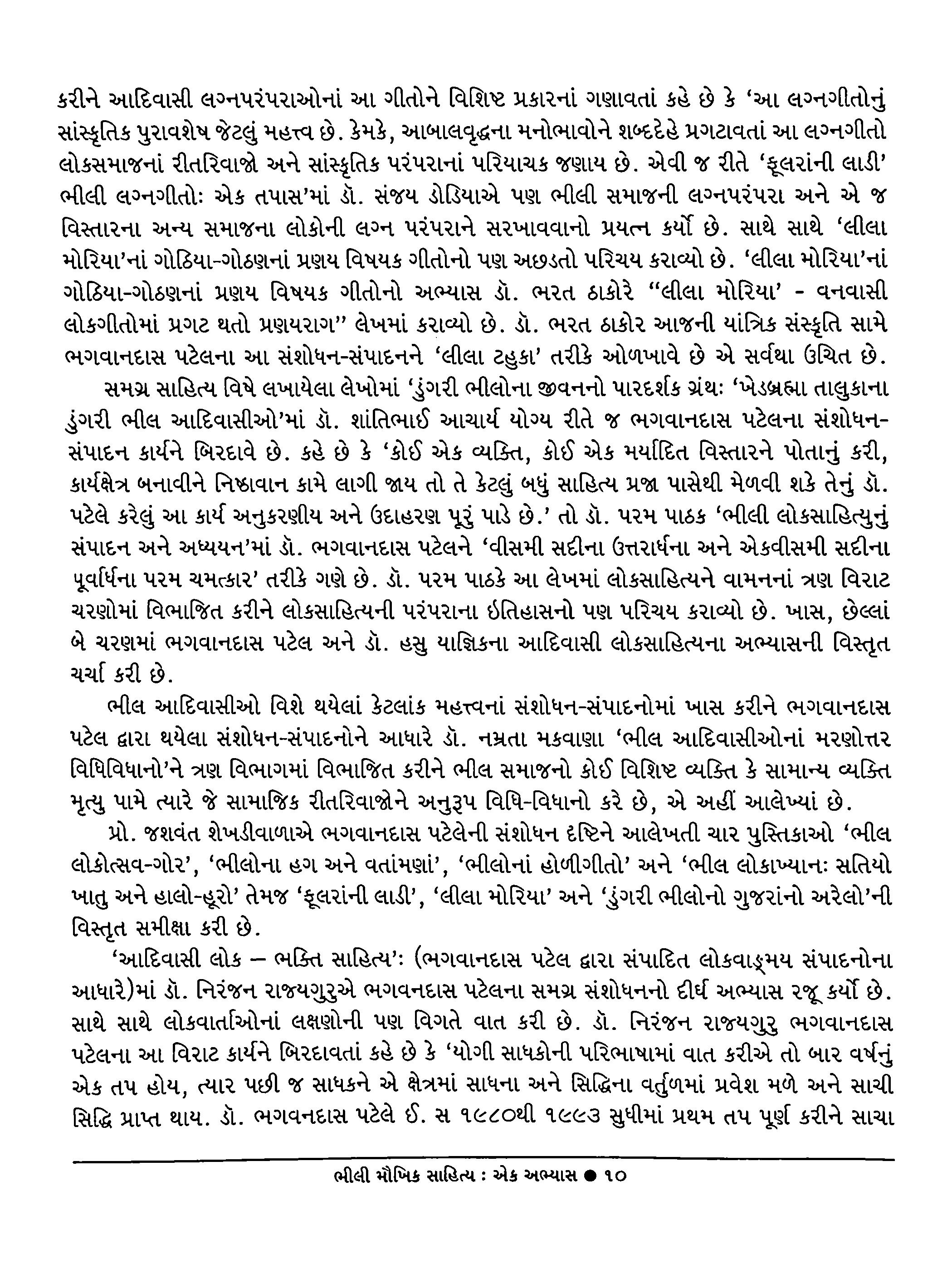 ભીલી મૌખિક સાહિત્ય એક અભ્યાસ (ભગવાનદાસ પટેલ)- દશરથ પટેલ