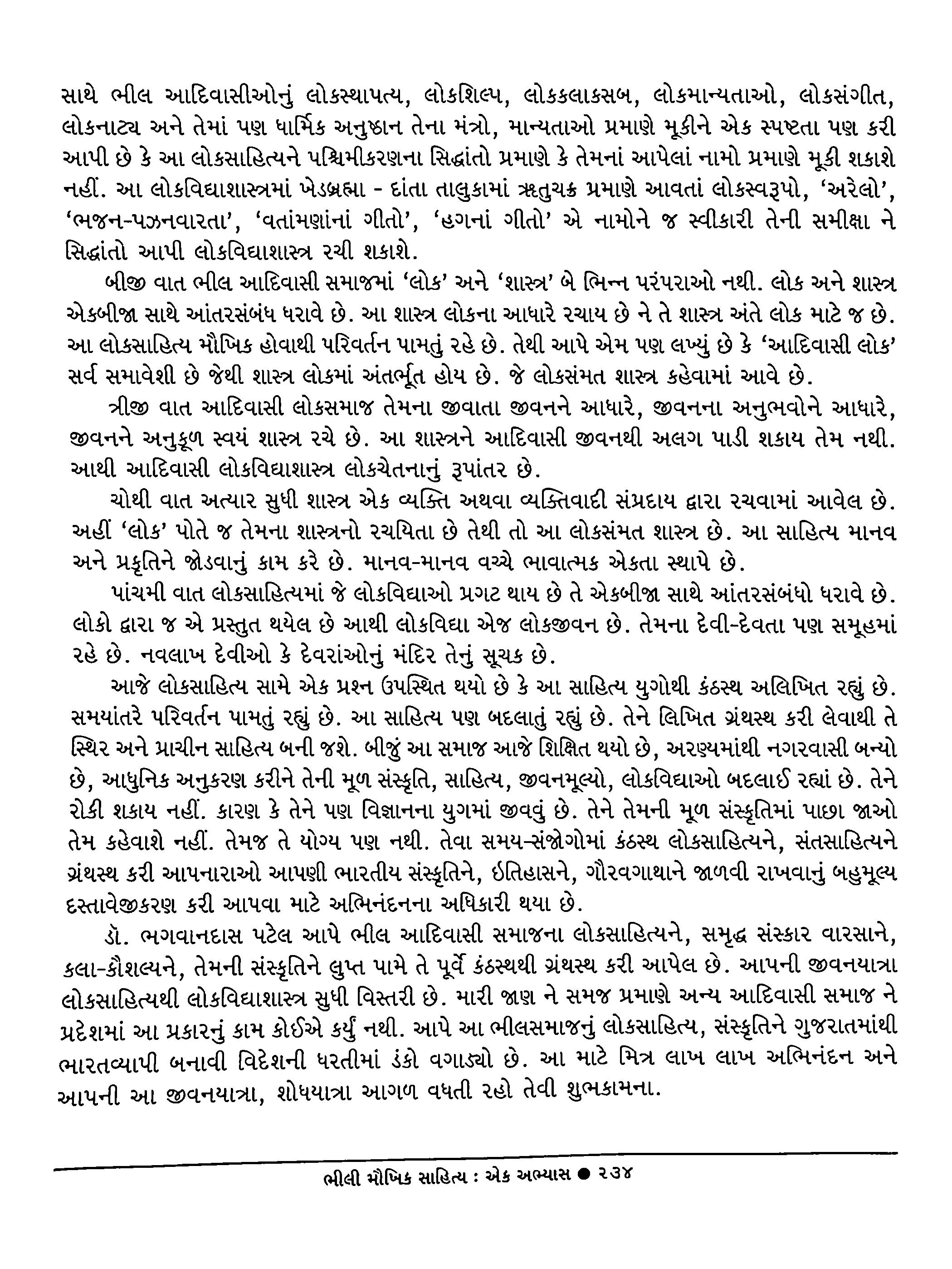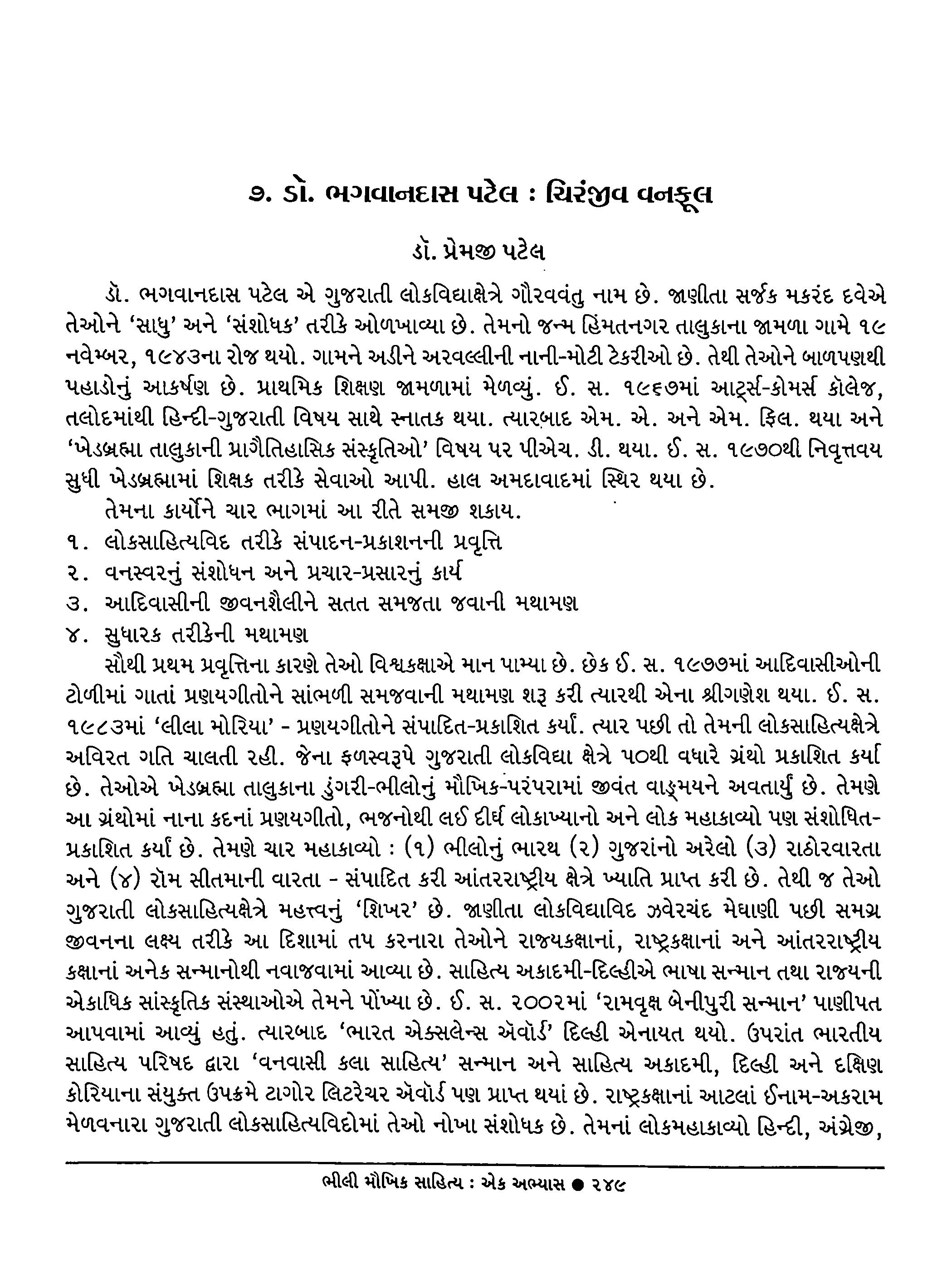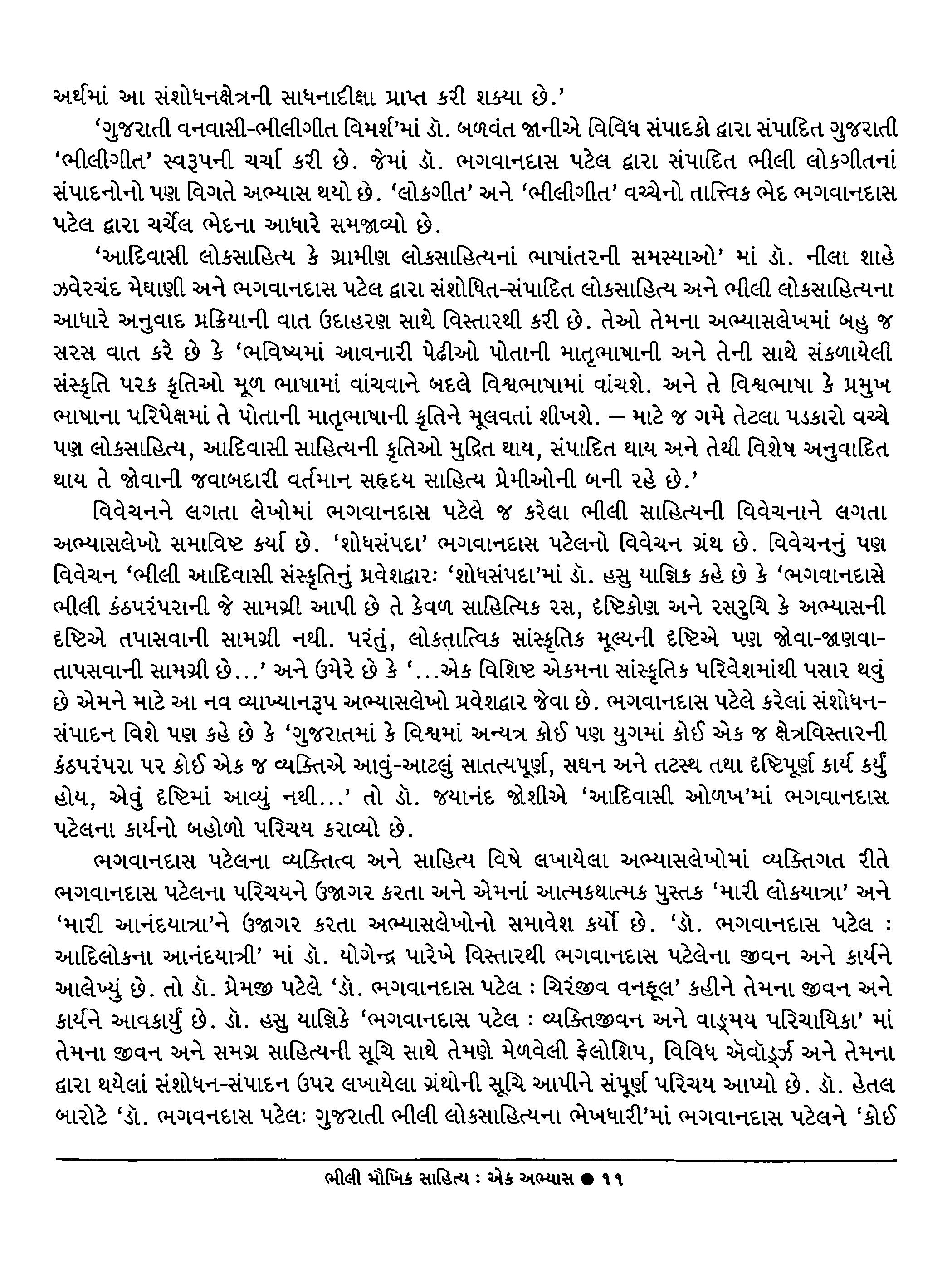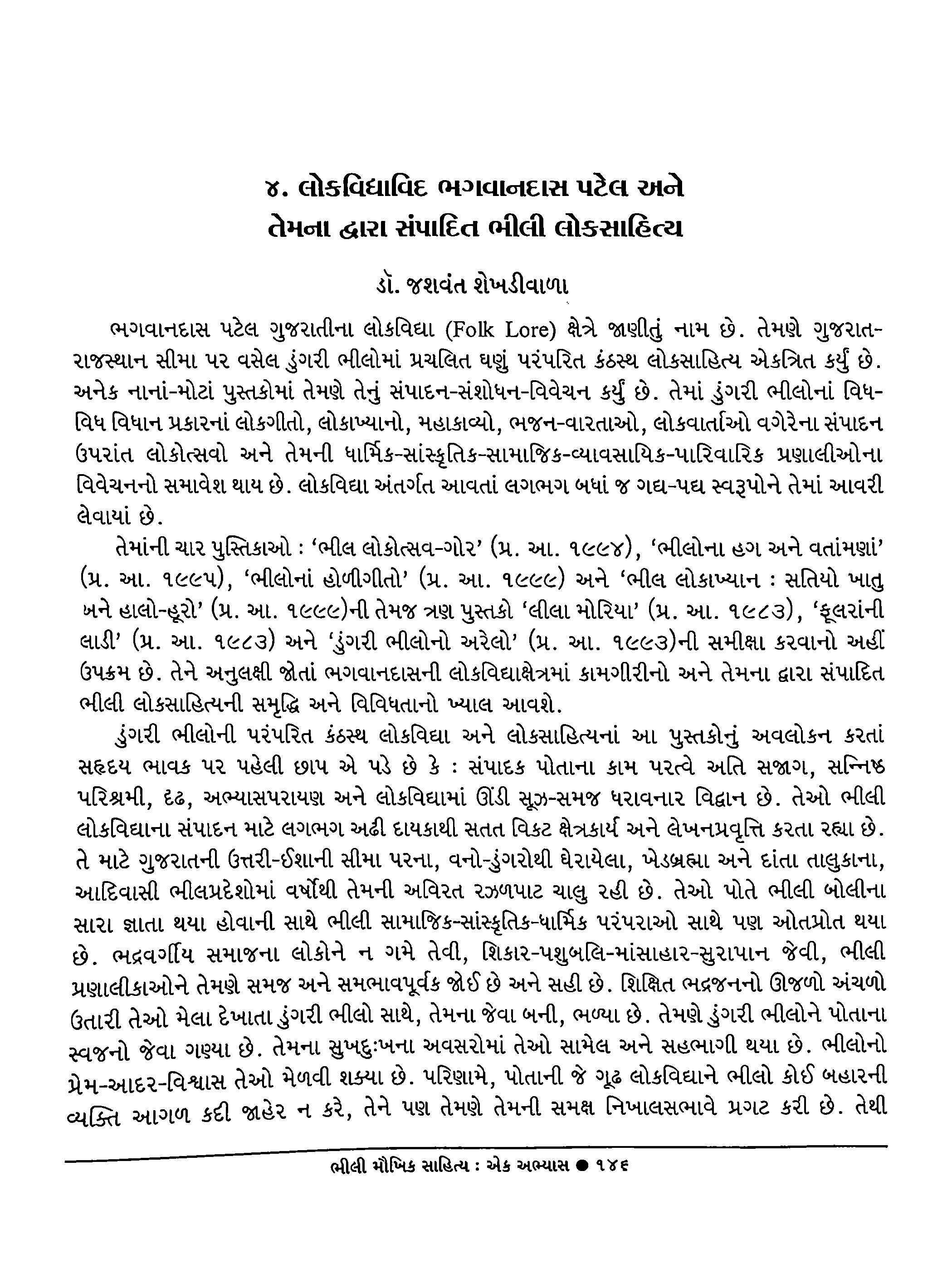 ભીલી મૌખિક સાહિત્ય એક અભ્યાસ (ભગવાનદાસ પટેલ)- દશરથ પટેલ