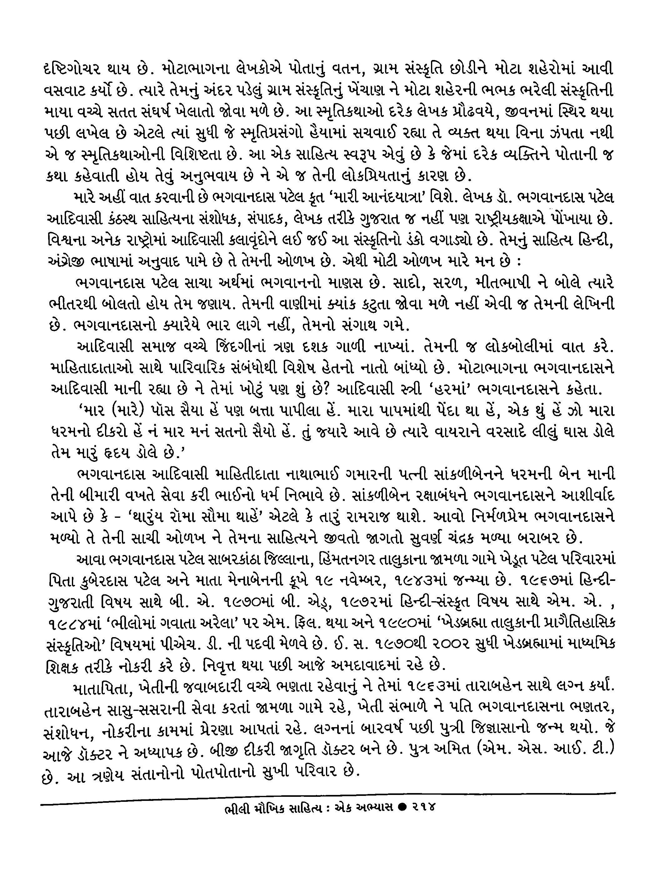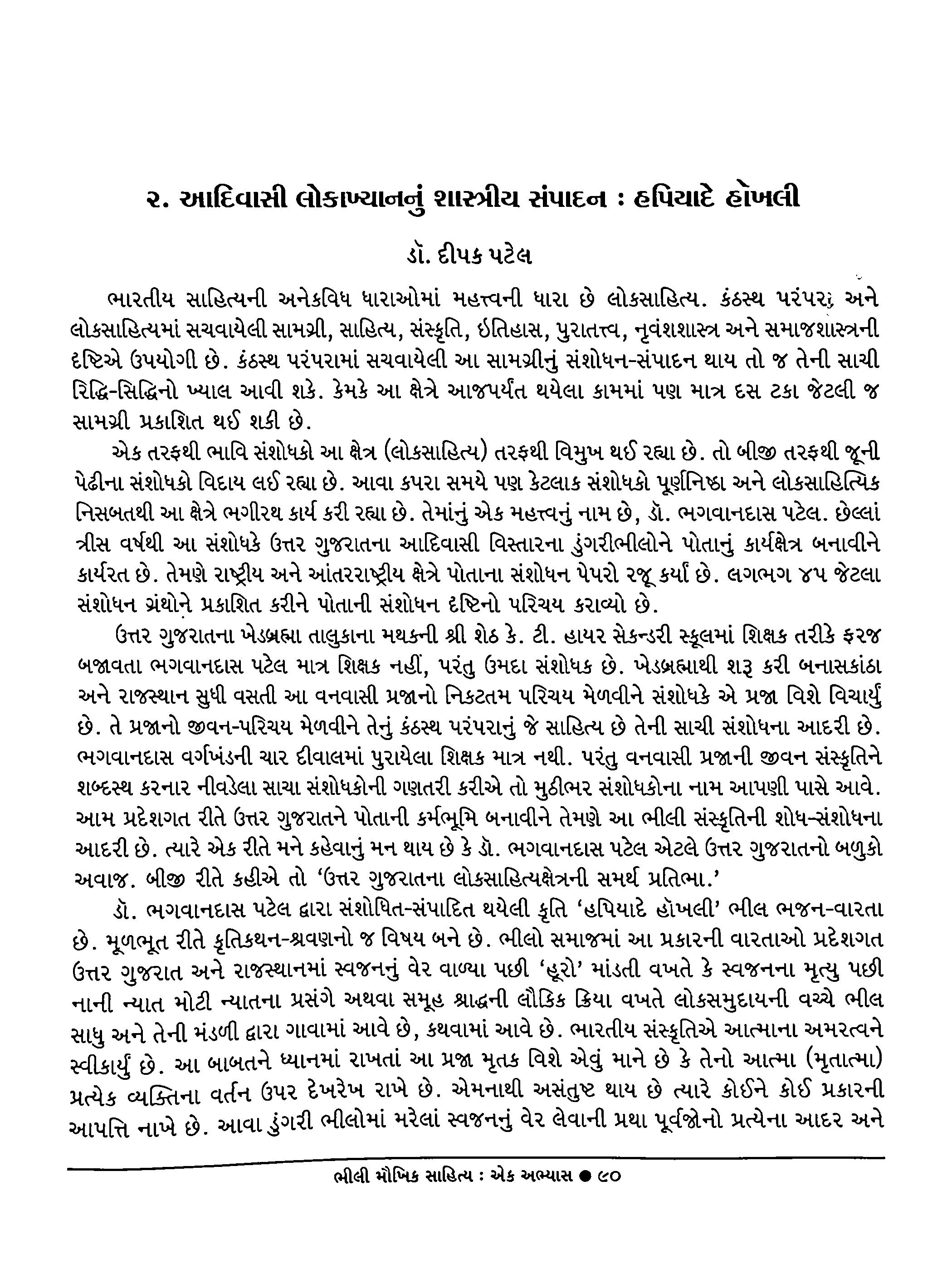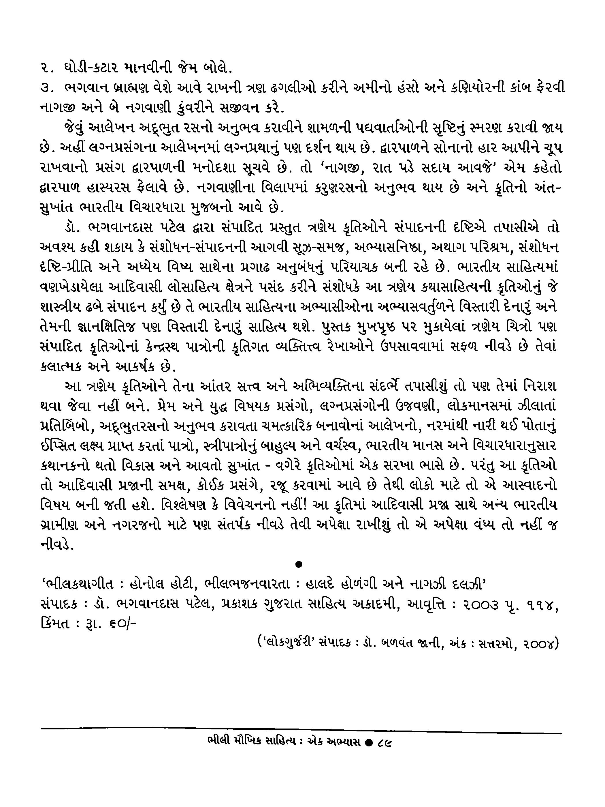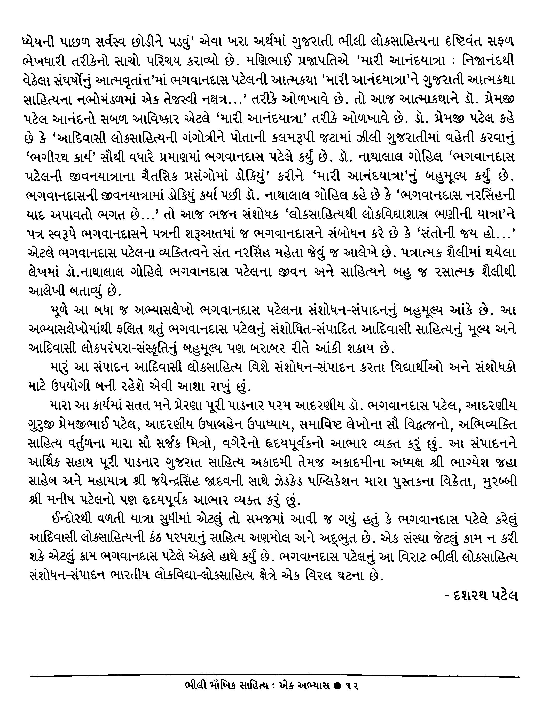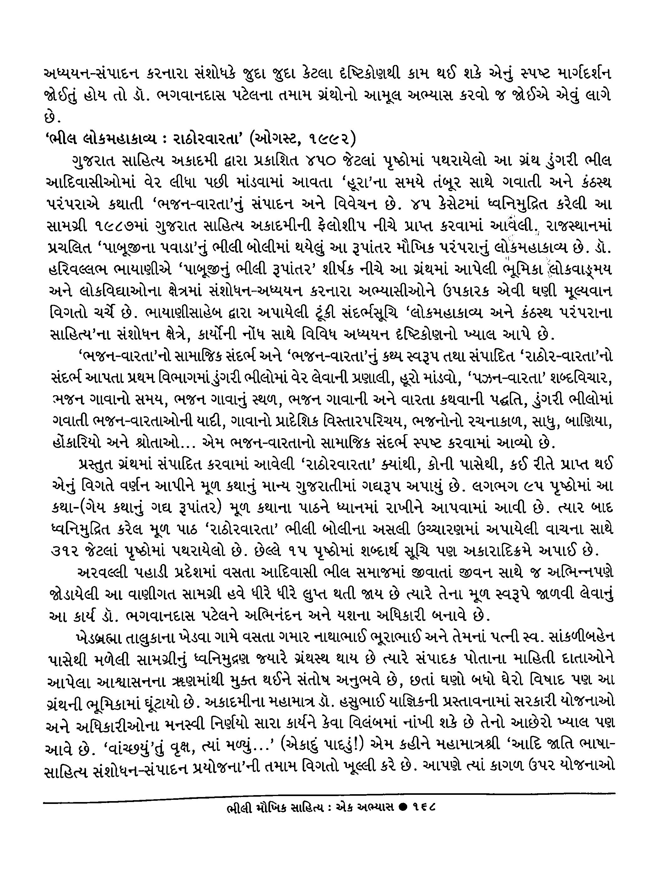 ભીલી મૌખિક સાહિત્ય એક અભ્યાસ (ભગવાનદાસ પટેલ)- દશરથ પટેલ
