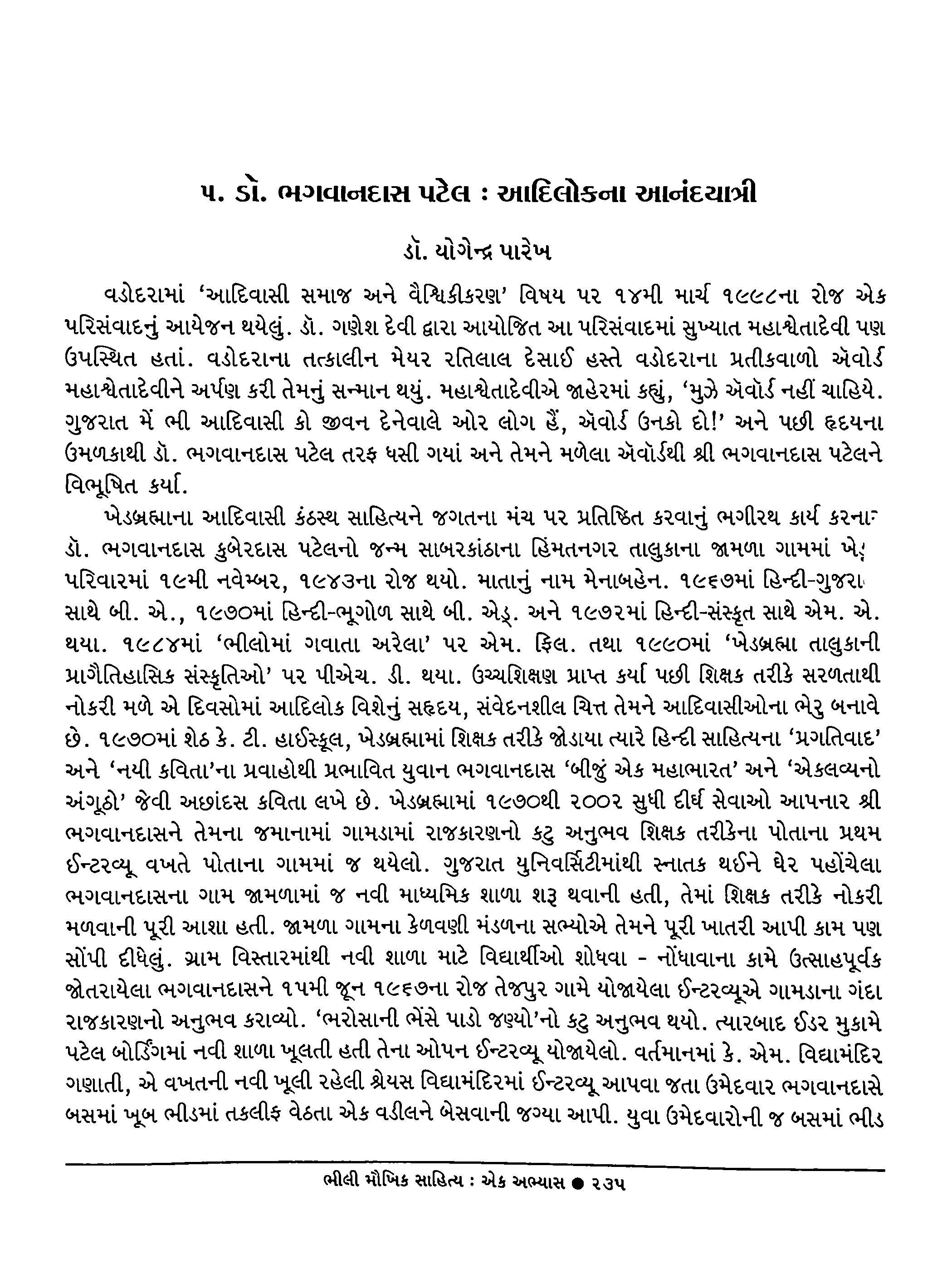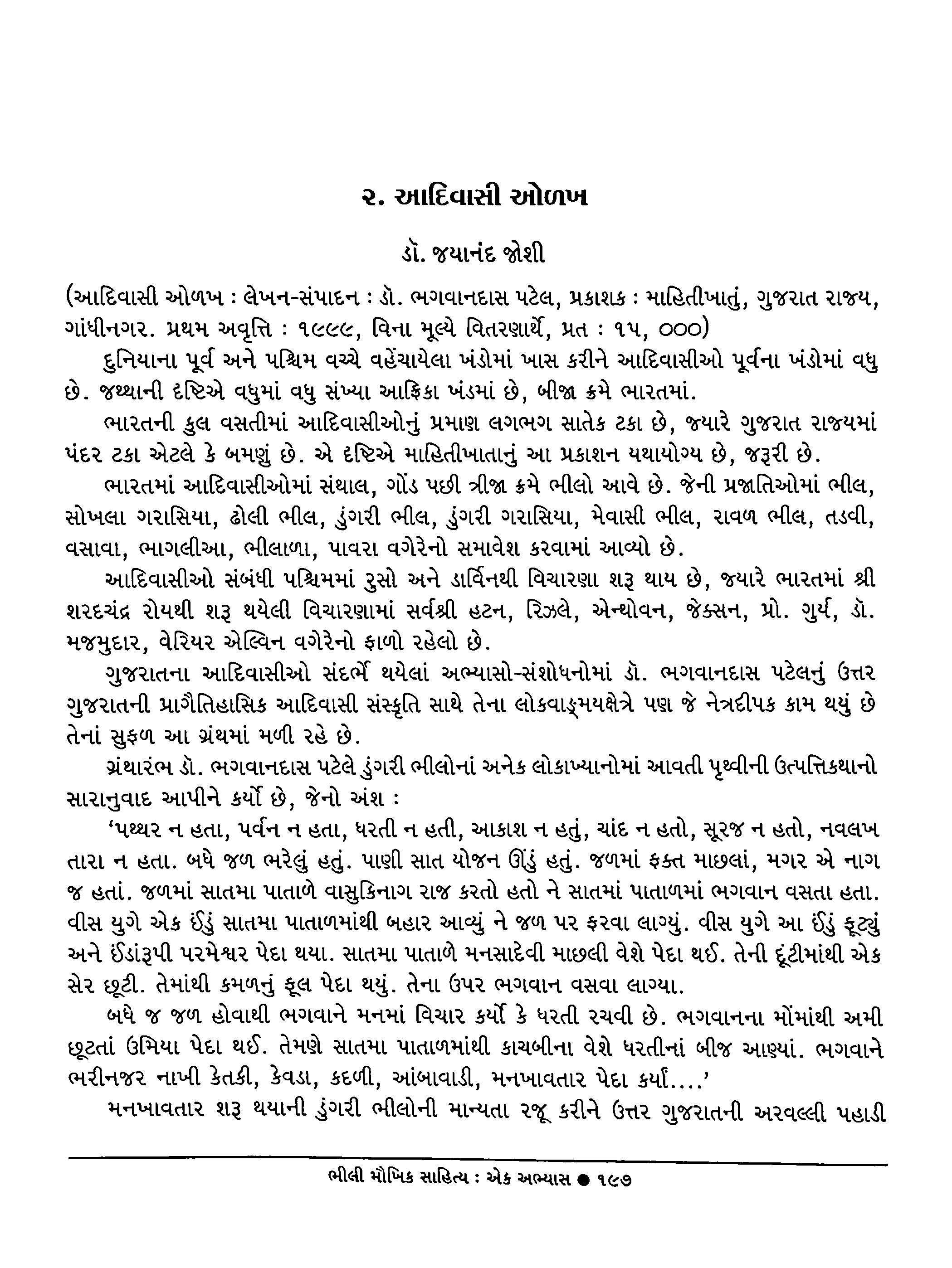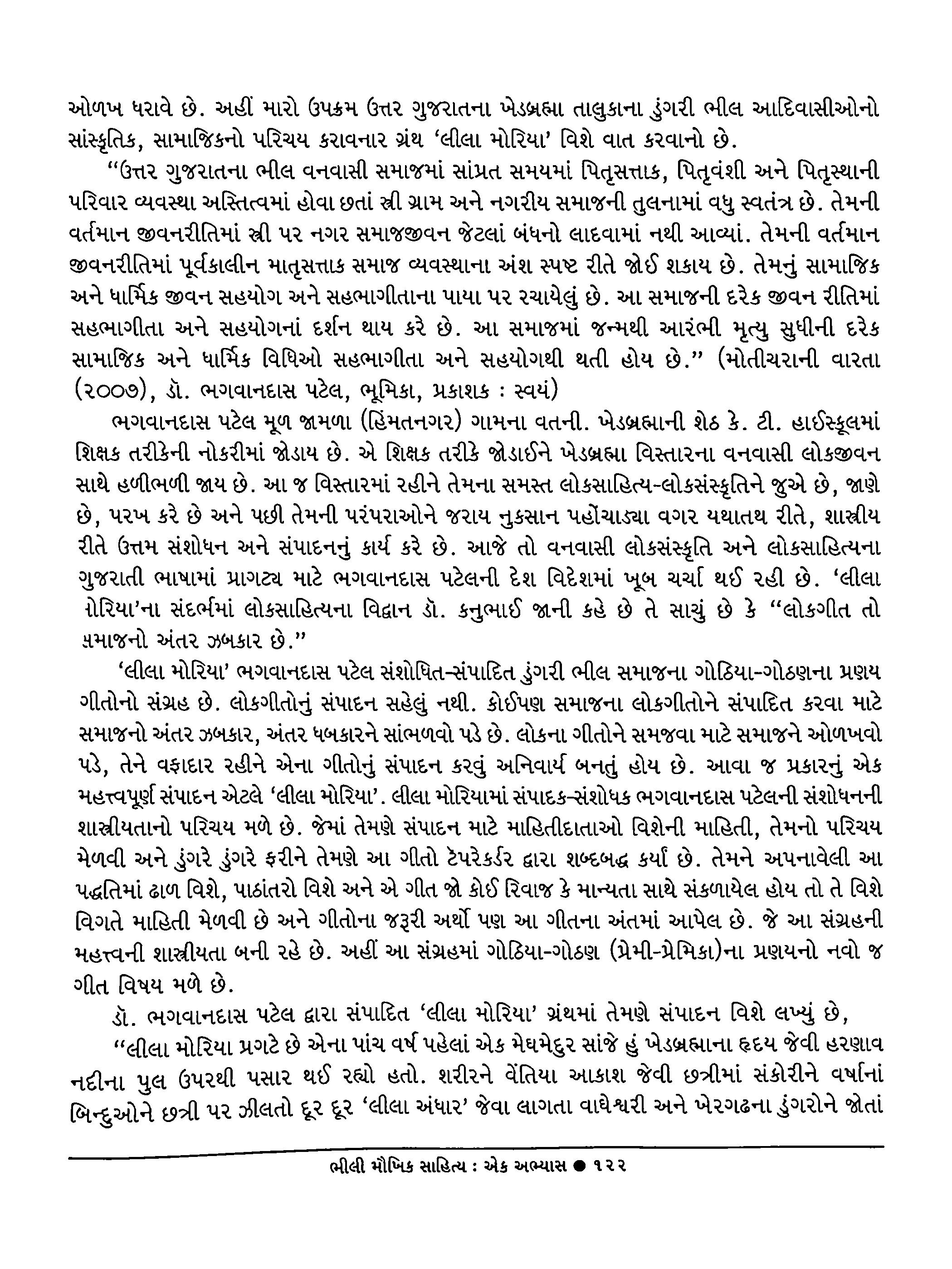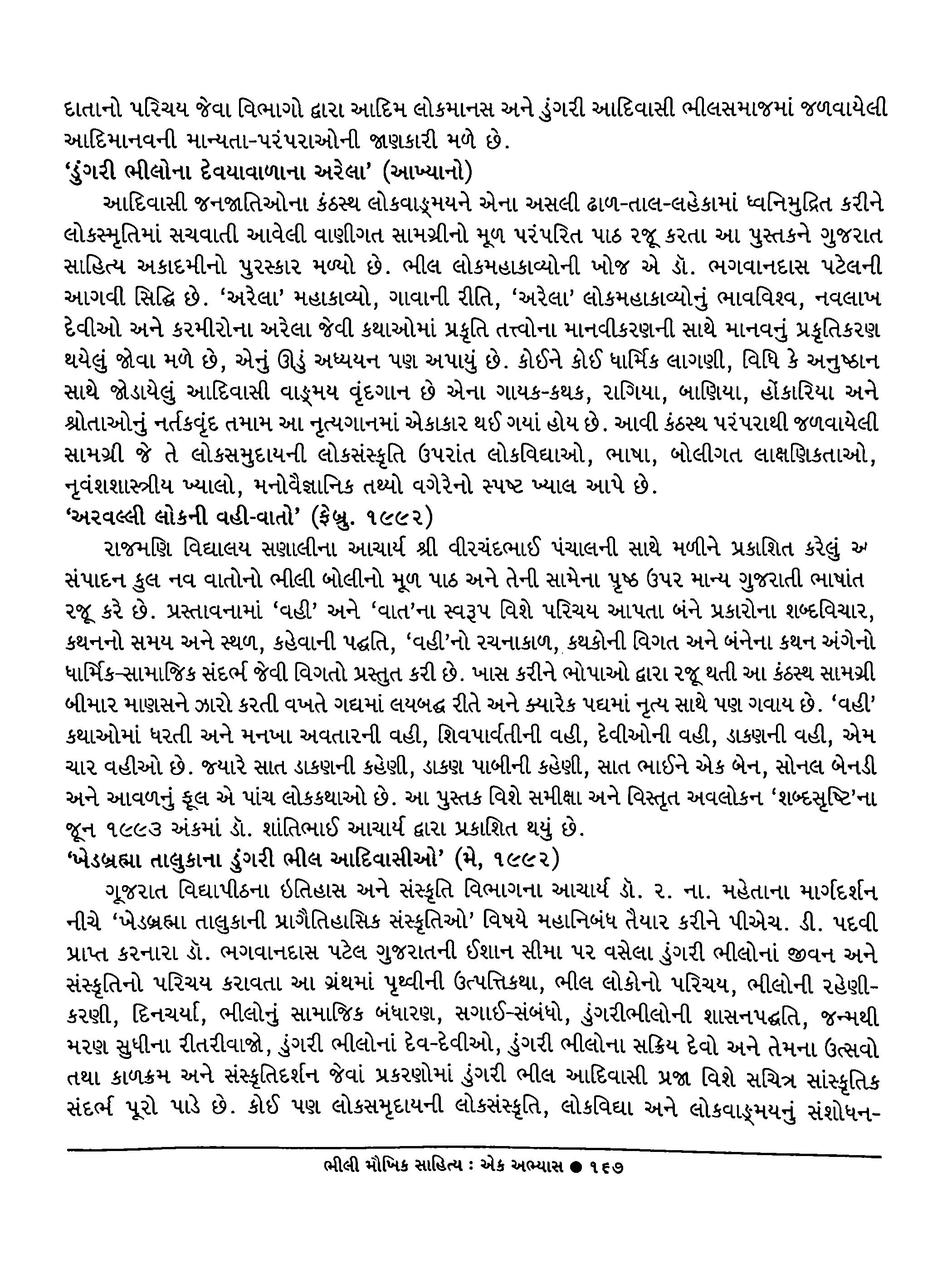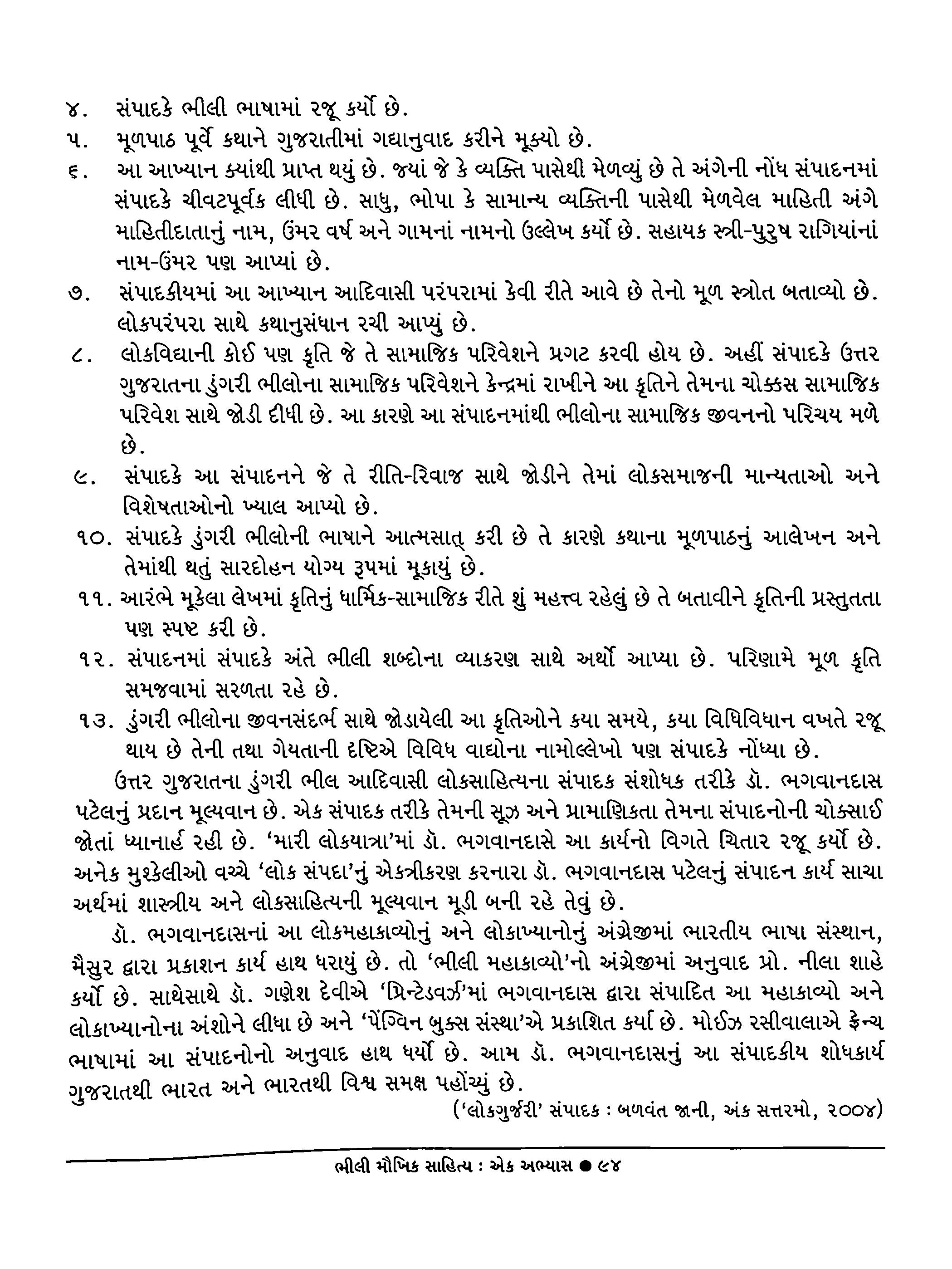 ભીલી મૌખિક સાહિત્ય એક અભ્યાસ (ભગવાનદાસ પટેલ)- દશરથ પટેલ