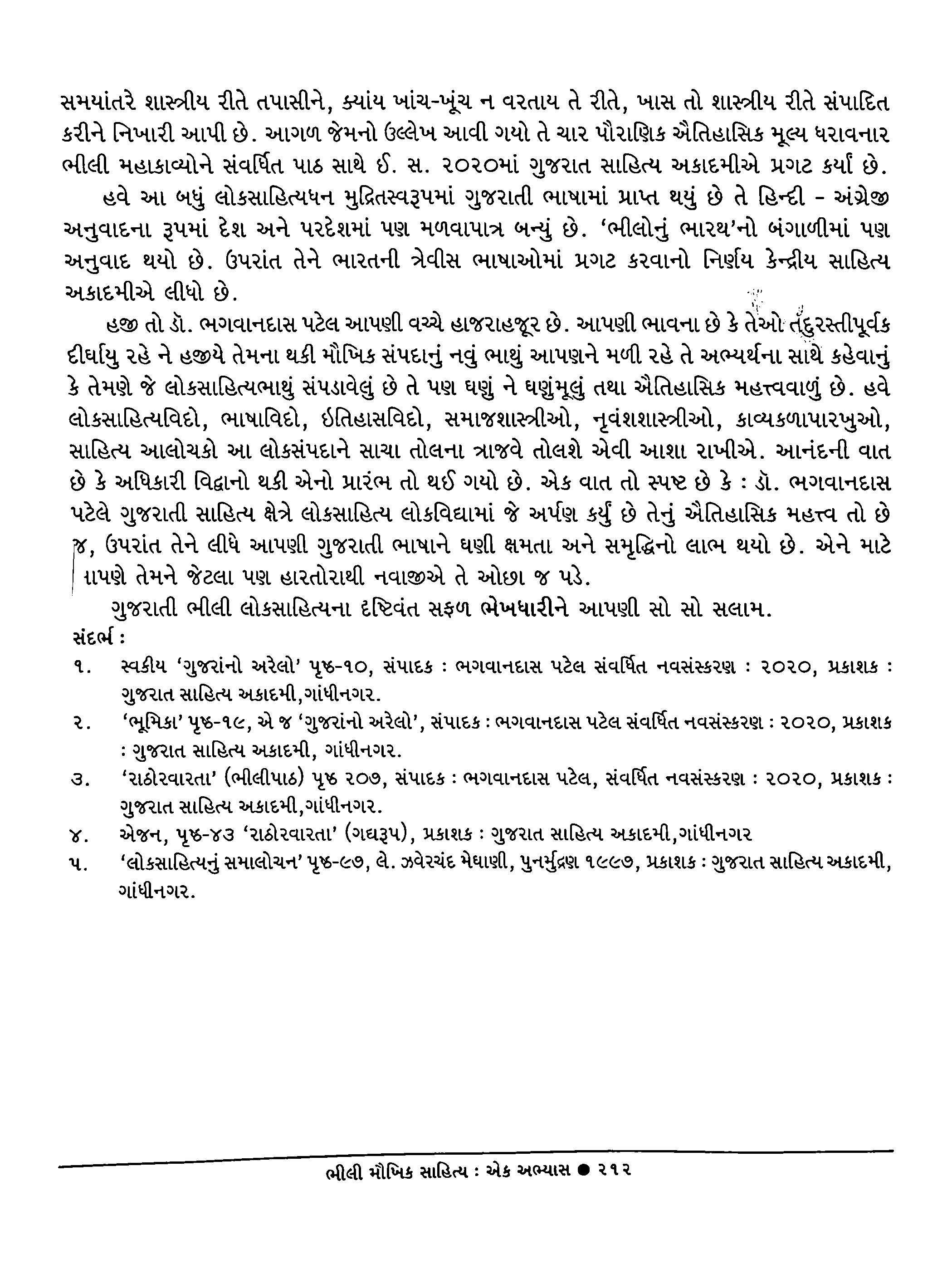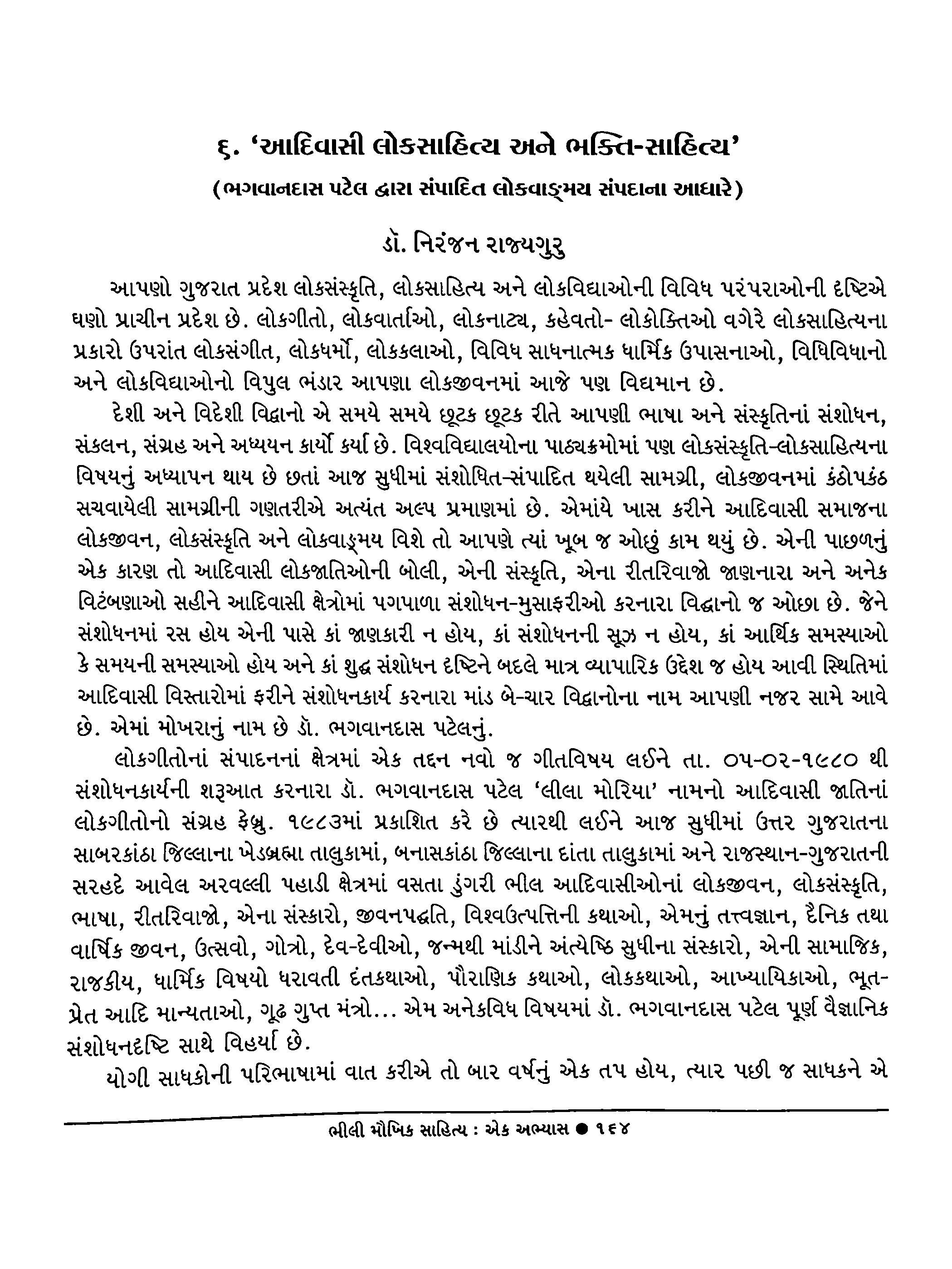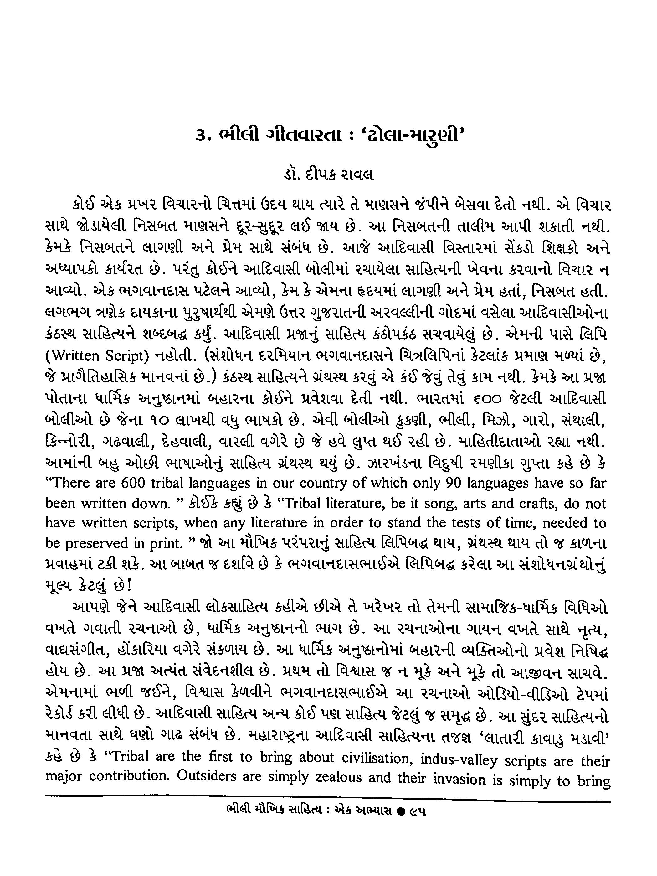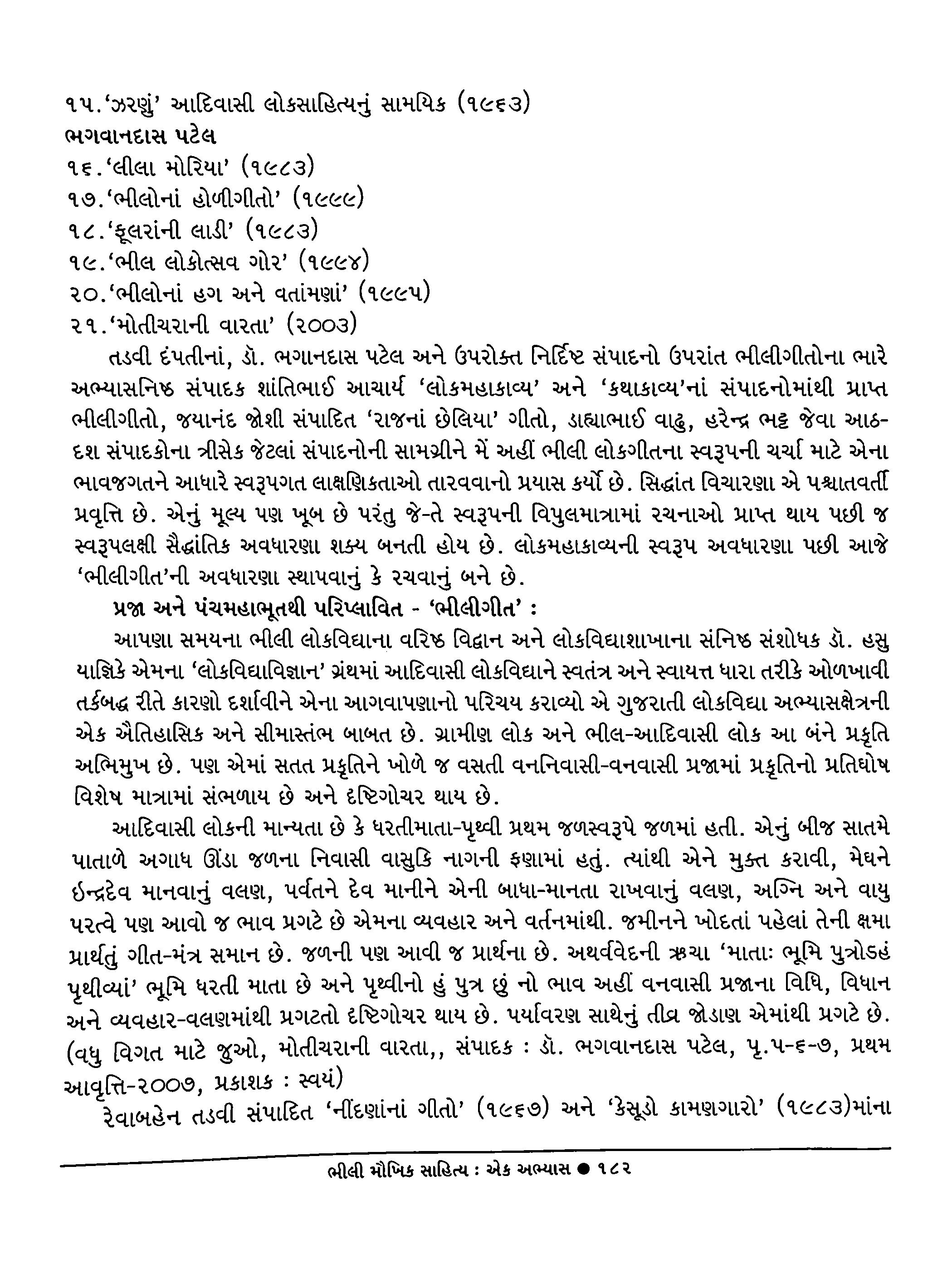 ભીલી મૌખિક સાહિત્ય એક અભ્યાસ (ભગવાનદાસ પટેલ)- દશરથ પટેલ