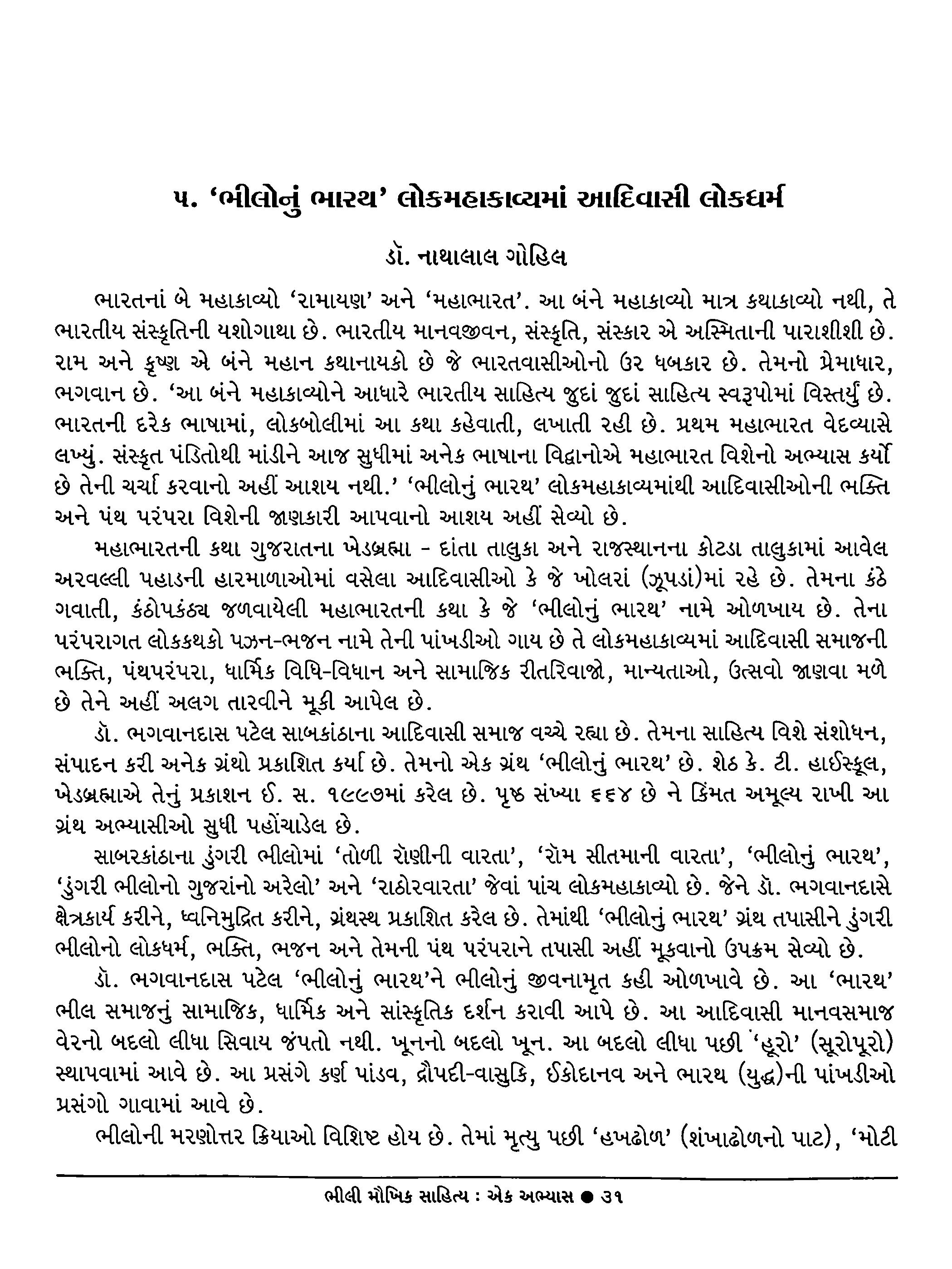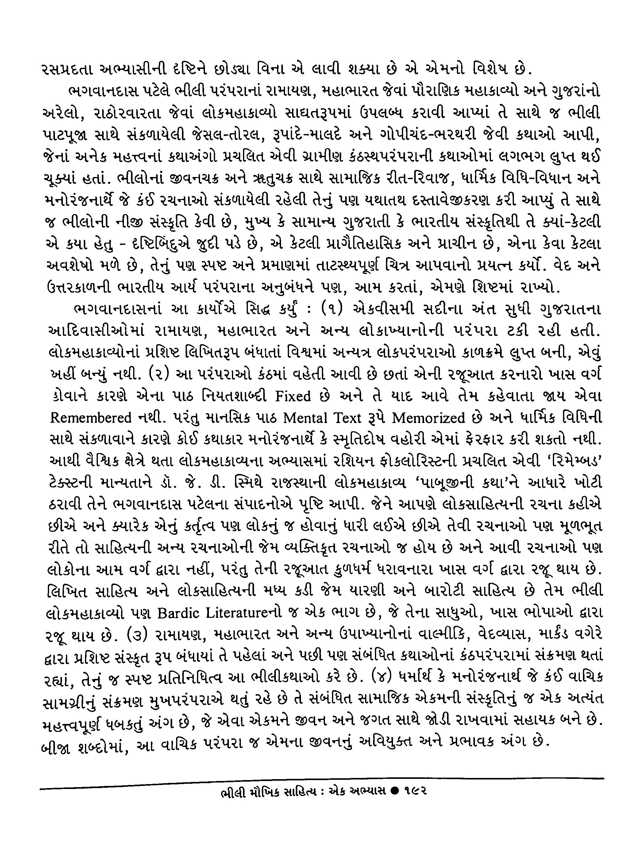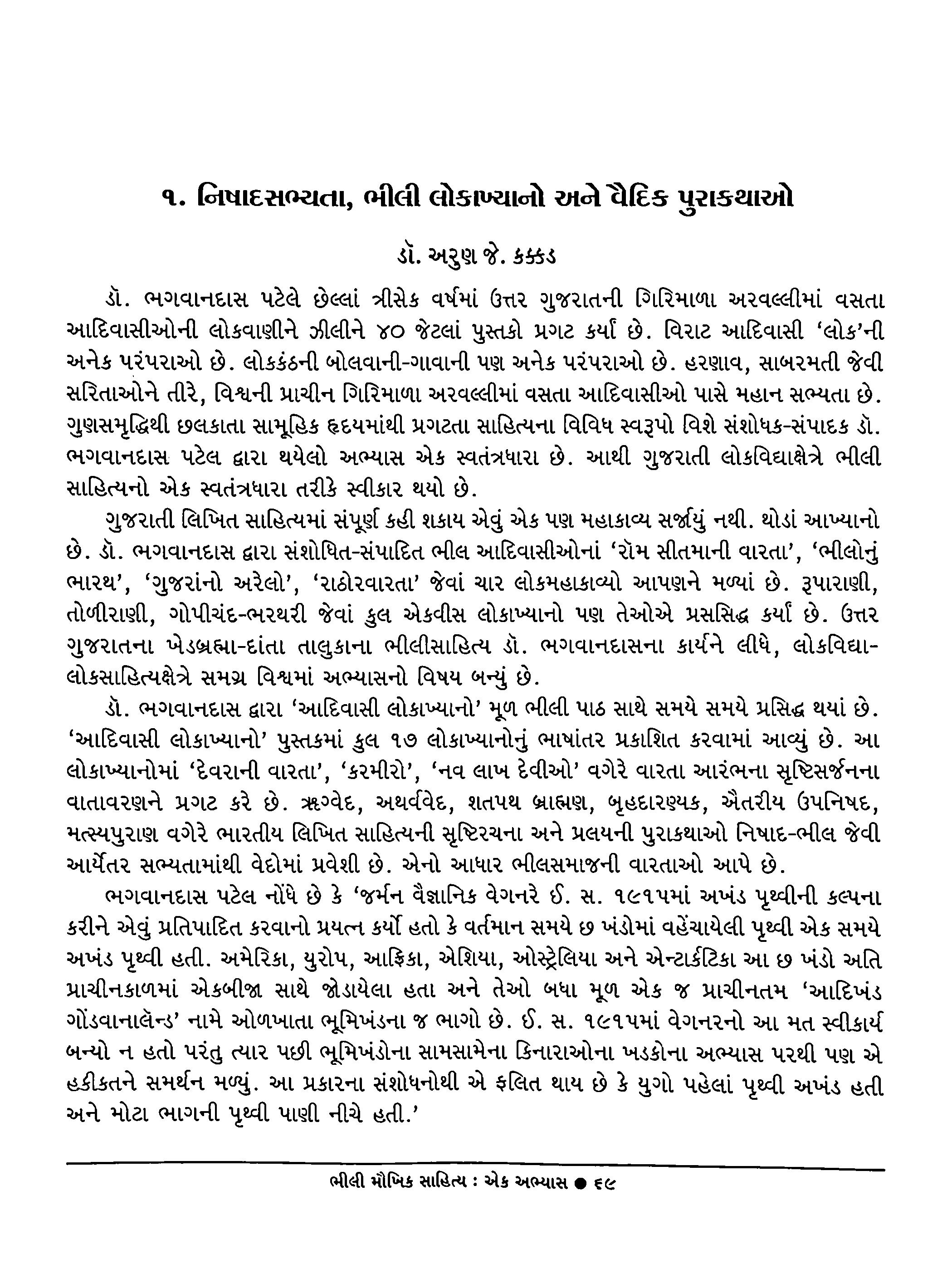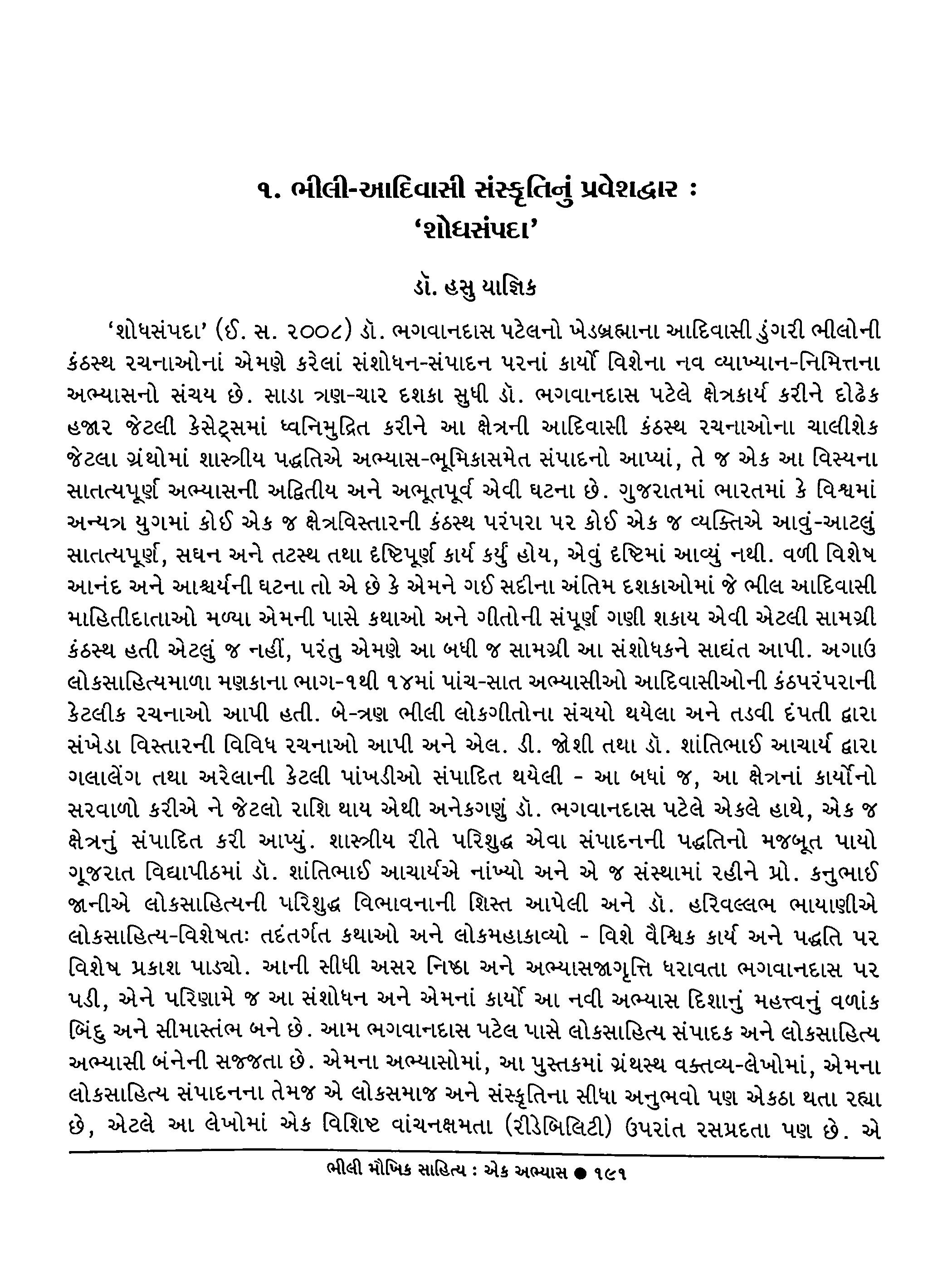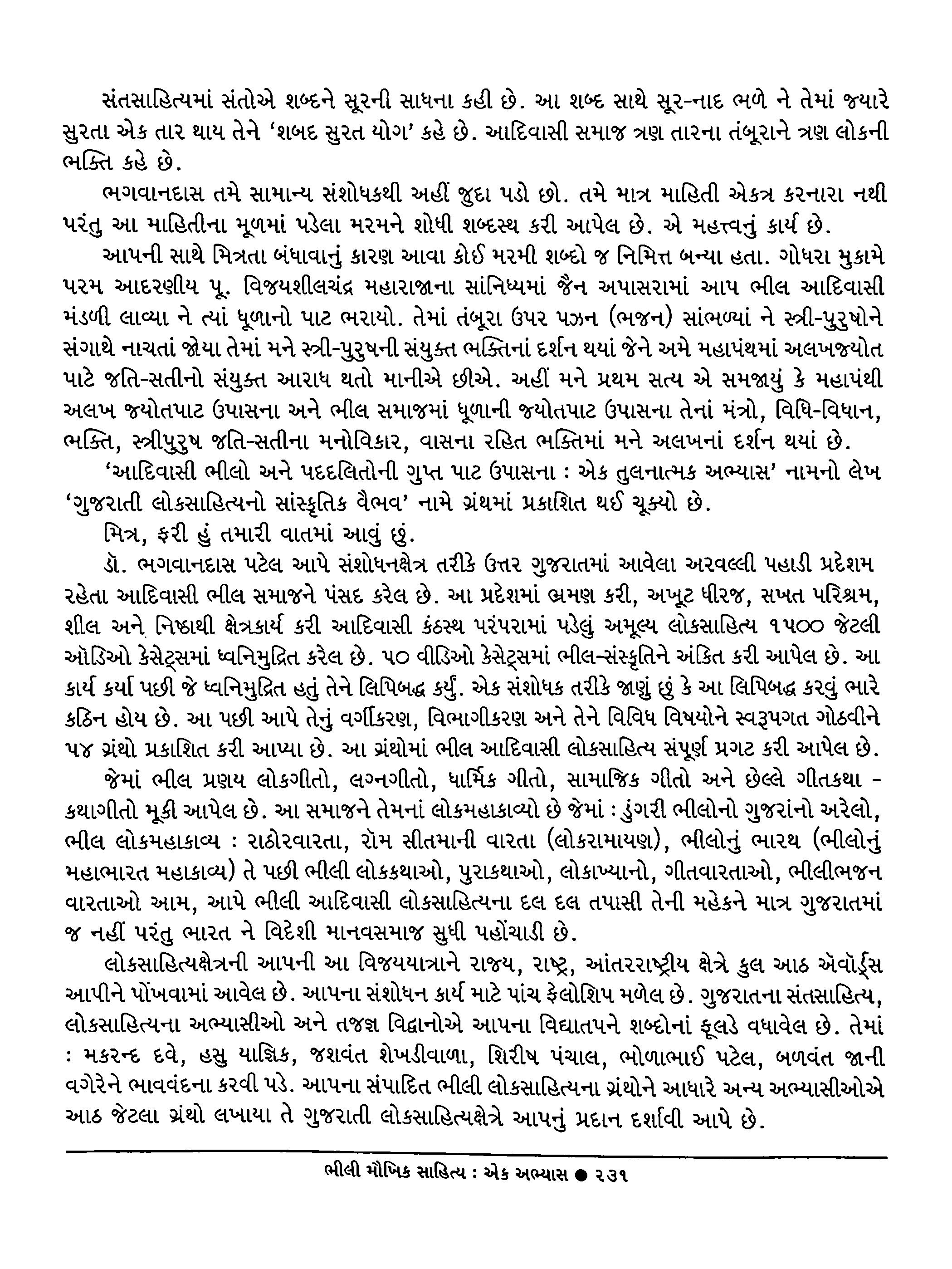 ભીલી મૌખિક સાહિત્ય એક અભ્યાસ (ભગવાનદાસ પટેલ)- દશરથ પટેલ