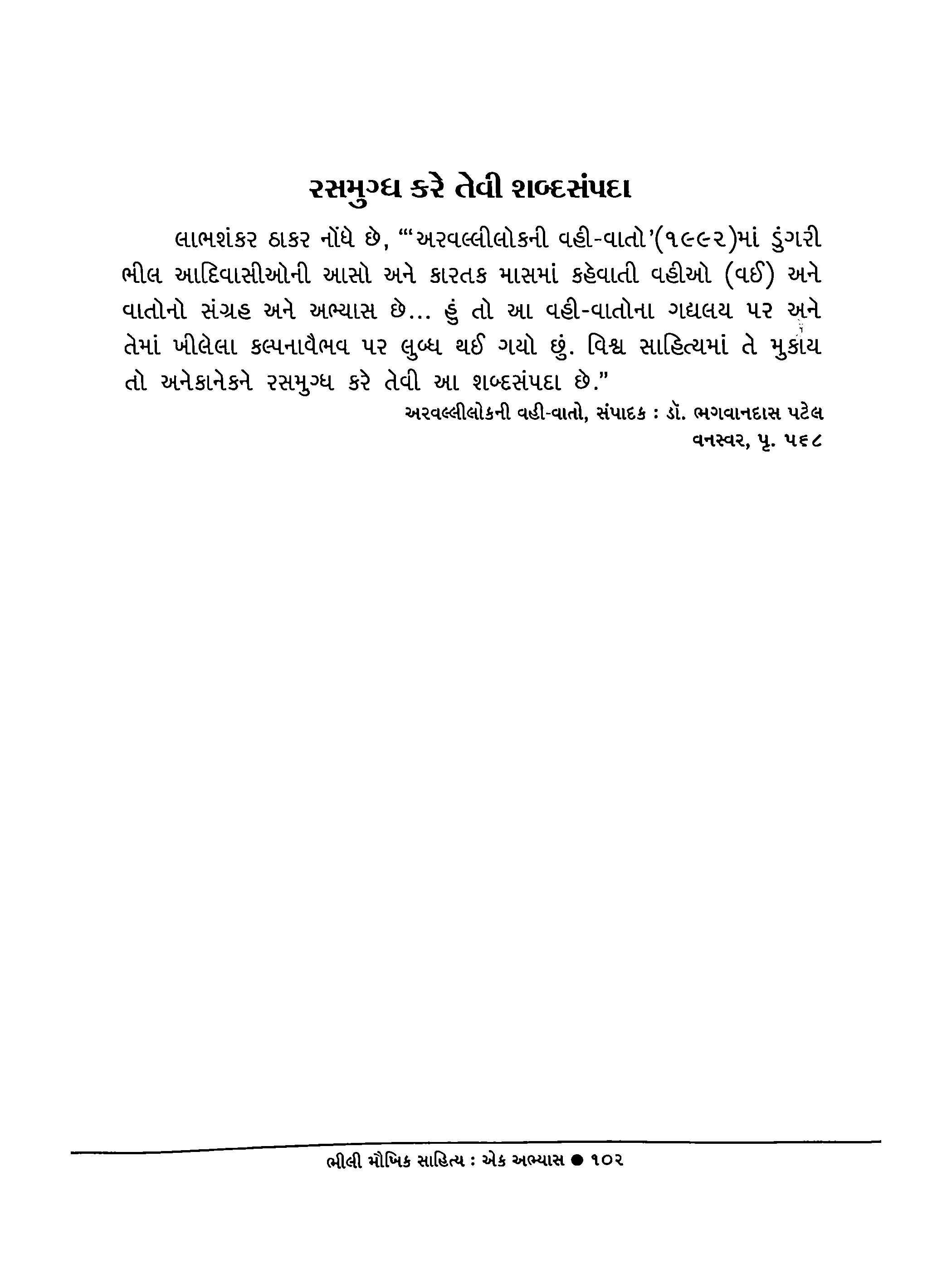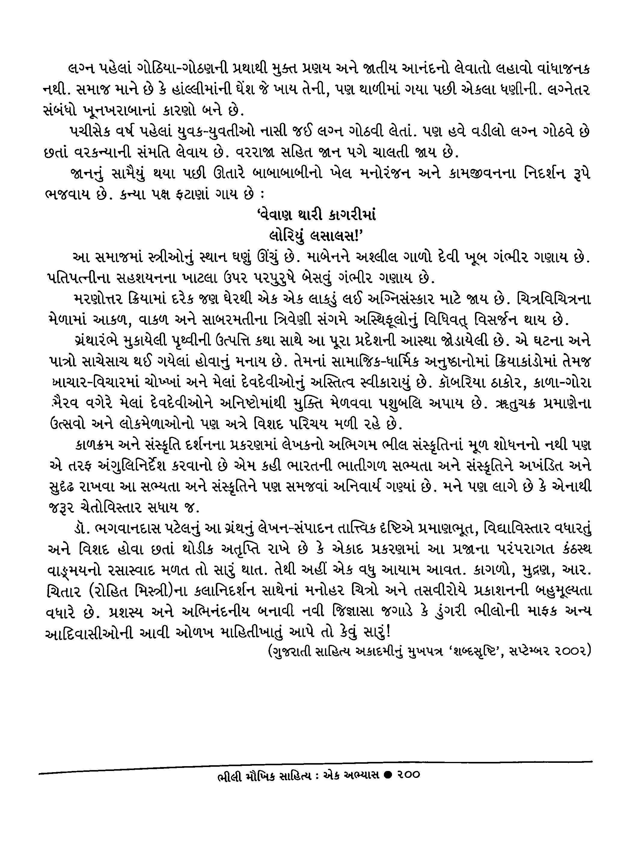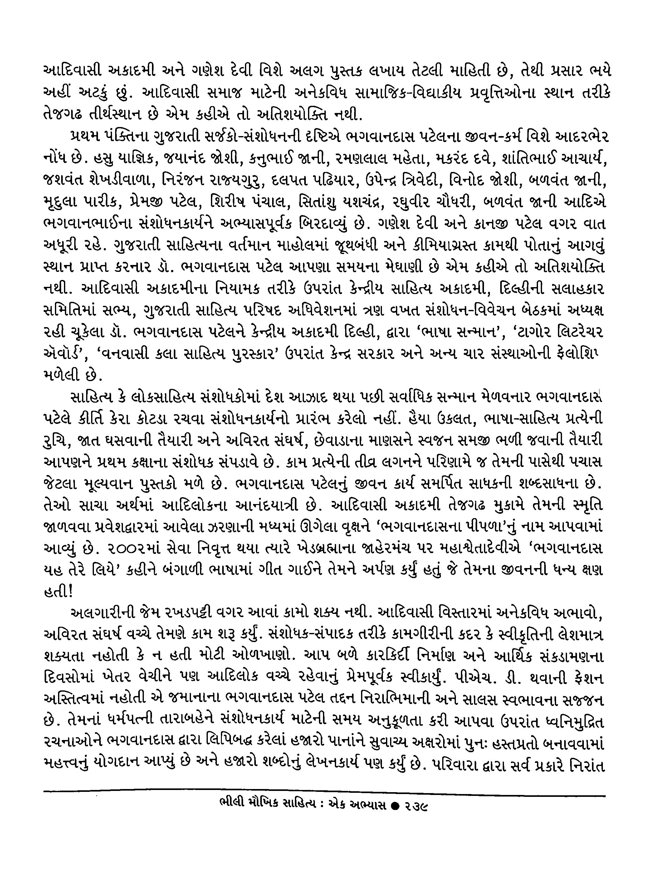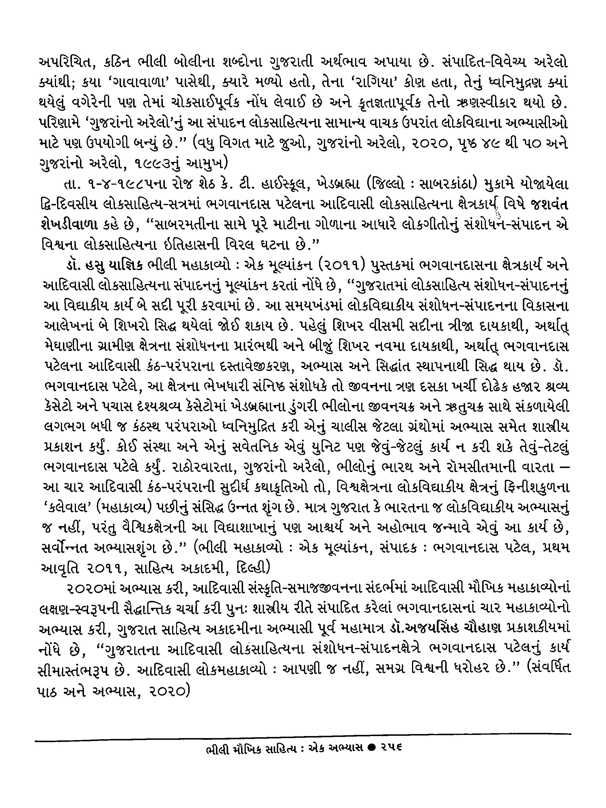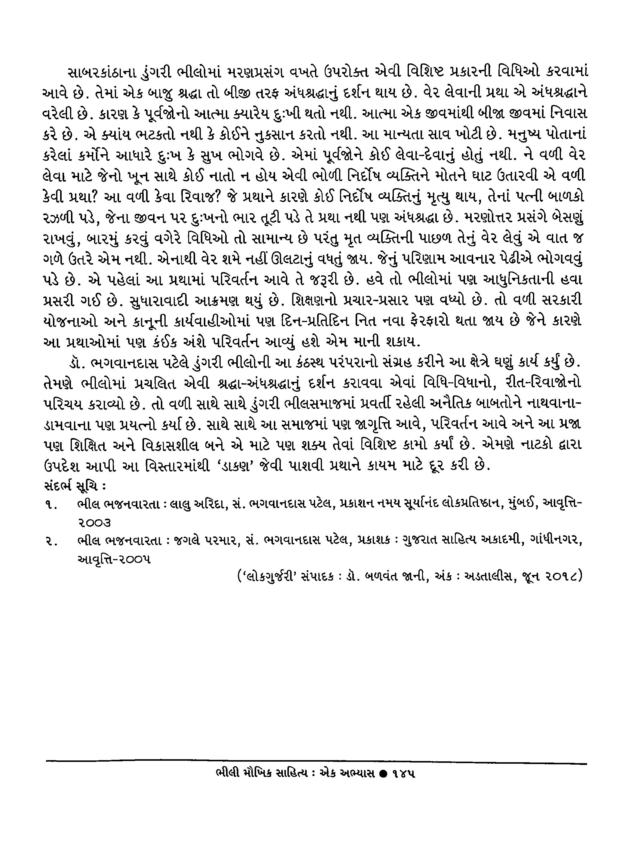 ભીલી મૌખિક સાહિત્ય એક અભ્યાસ (ભગવાનદાસ પટેલ)- દશરથ પટેલ
