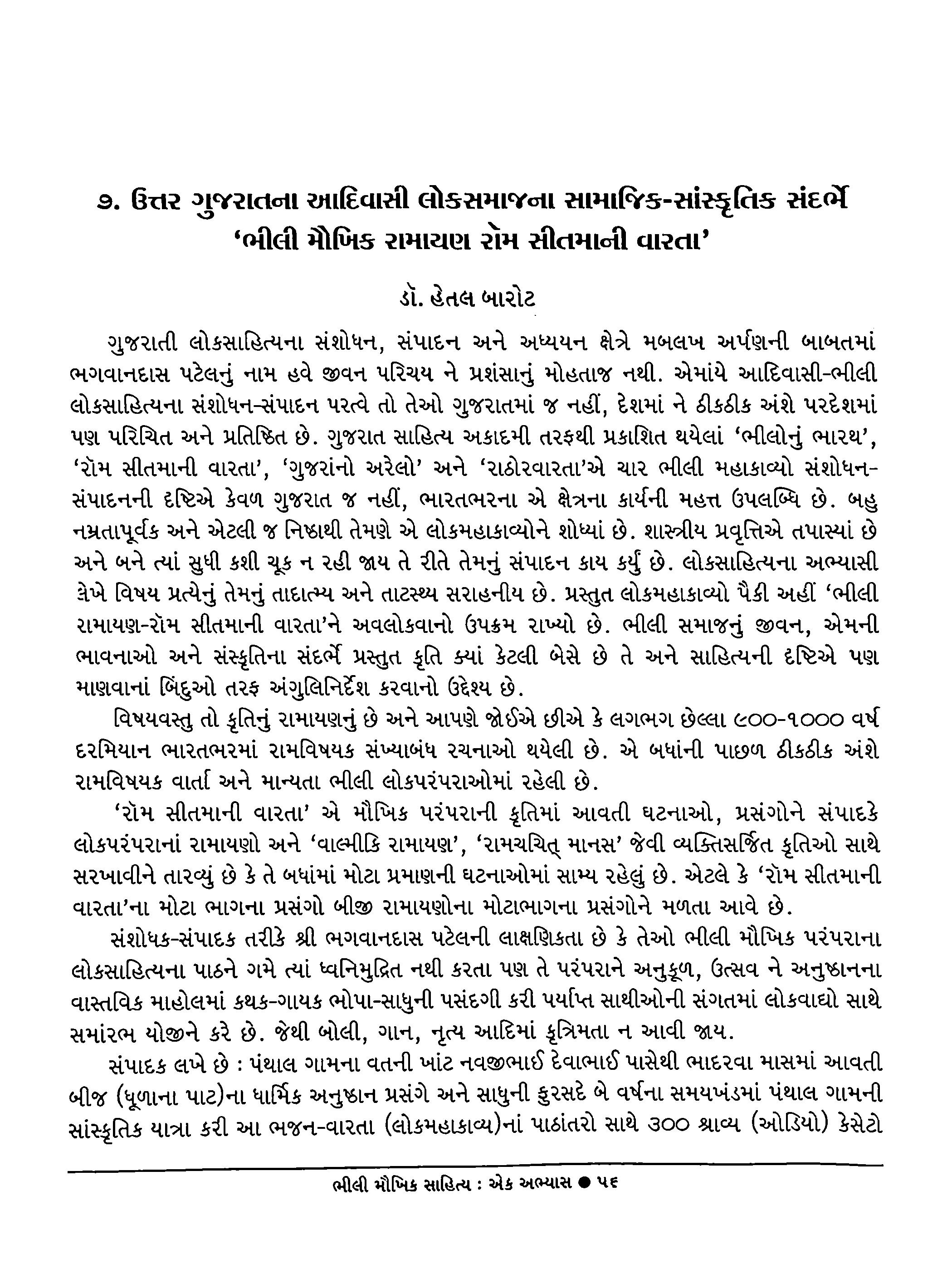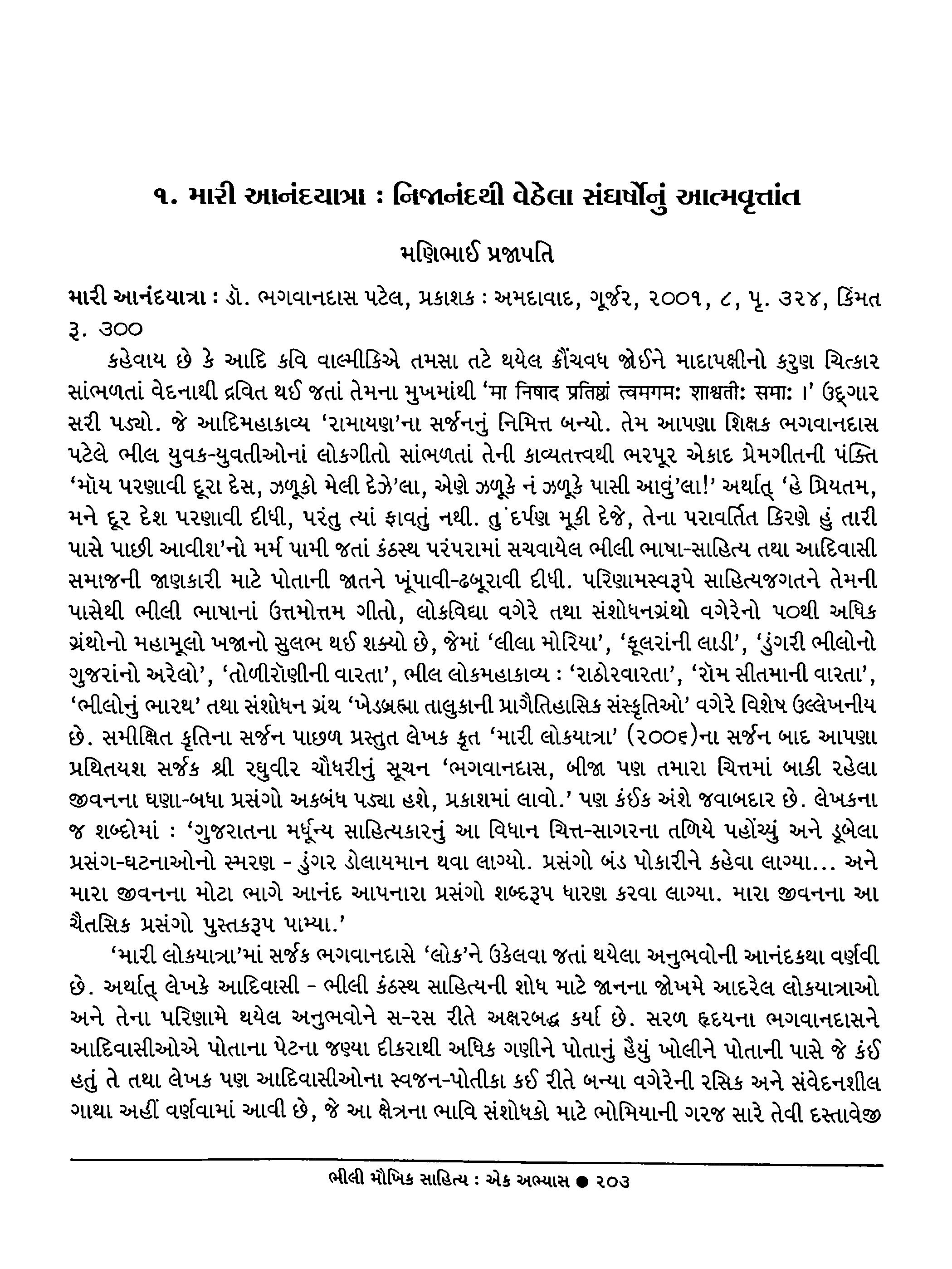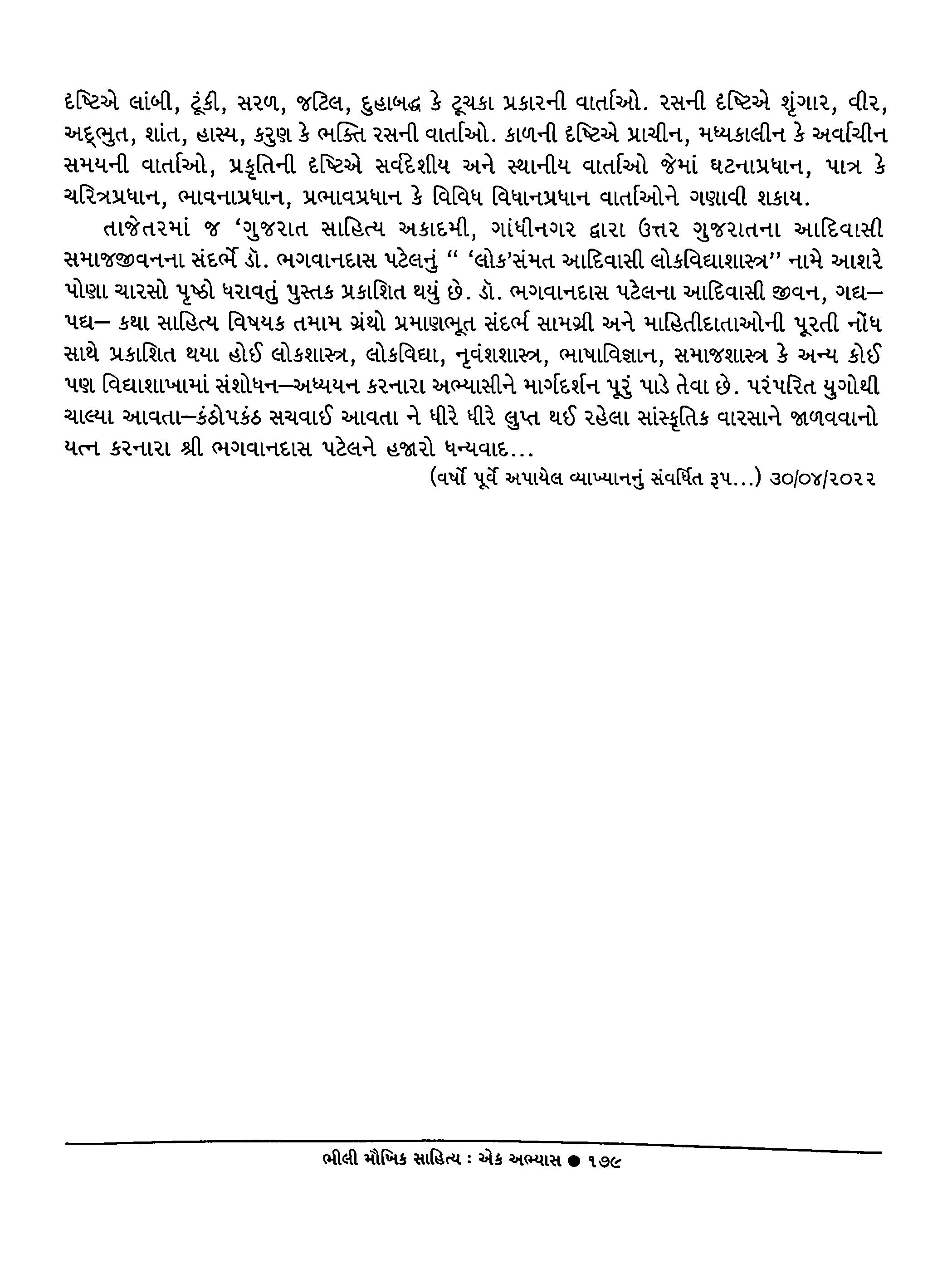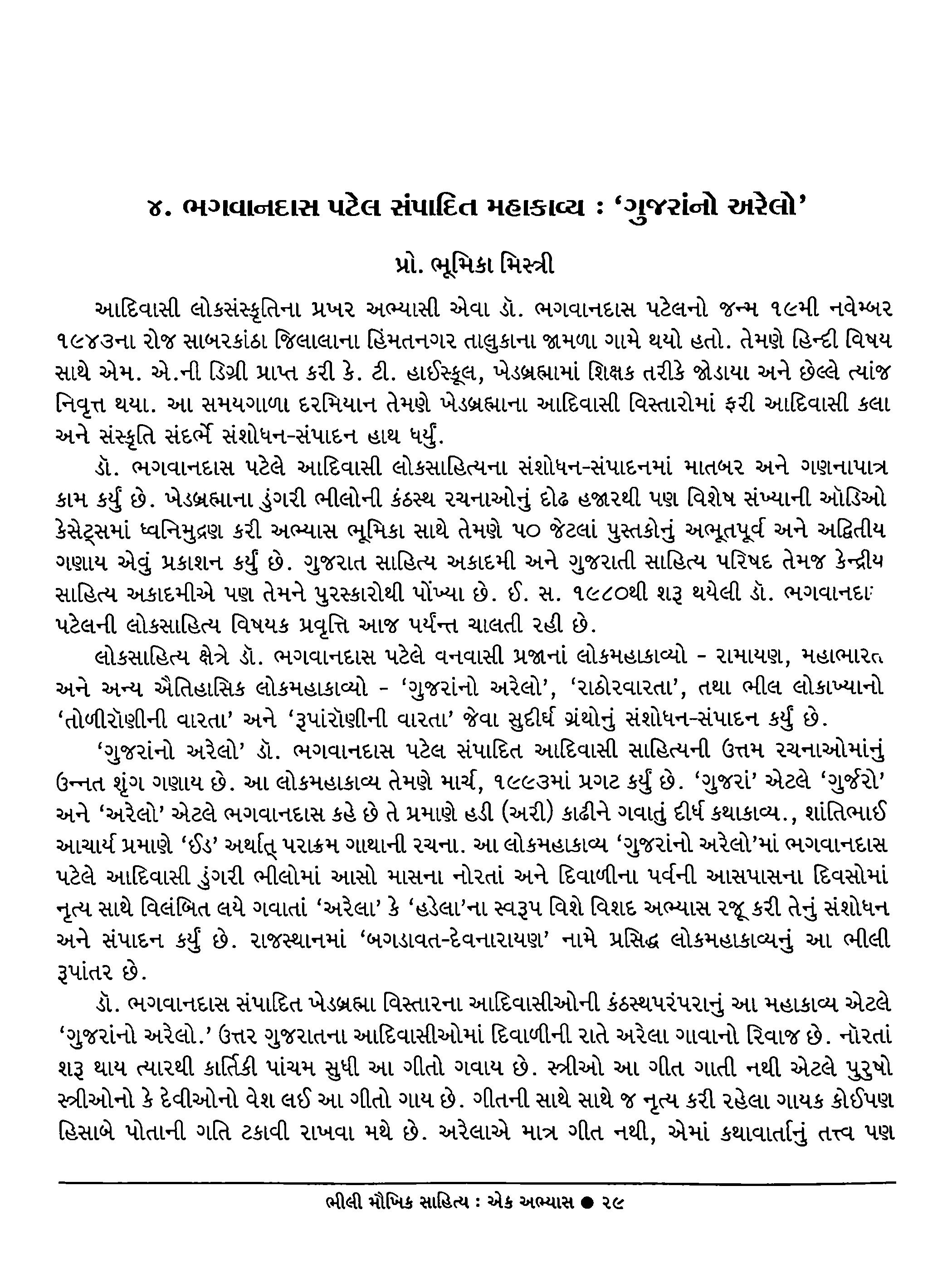 ભીલી મૌખિક સાહિત્ય એક અભ્યાસ (ભગવાનદાસ પટેલ)- દશરથ પટેલ