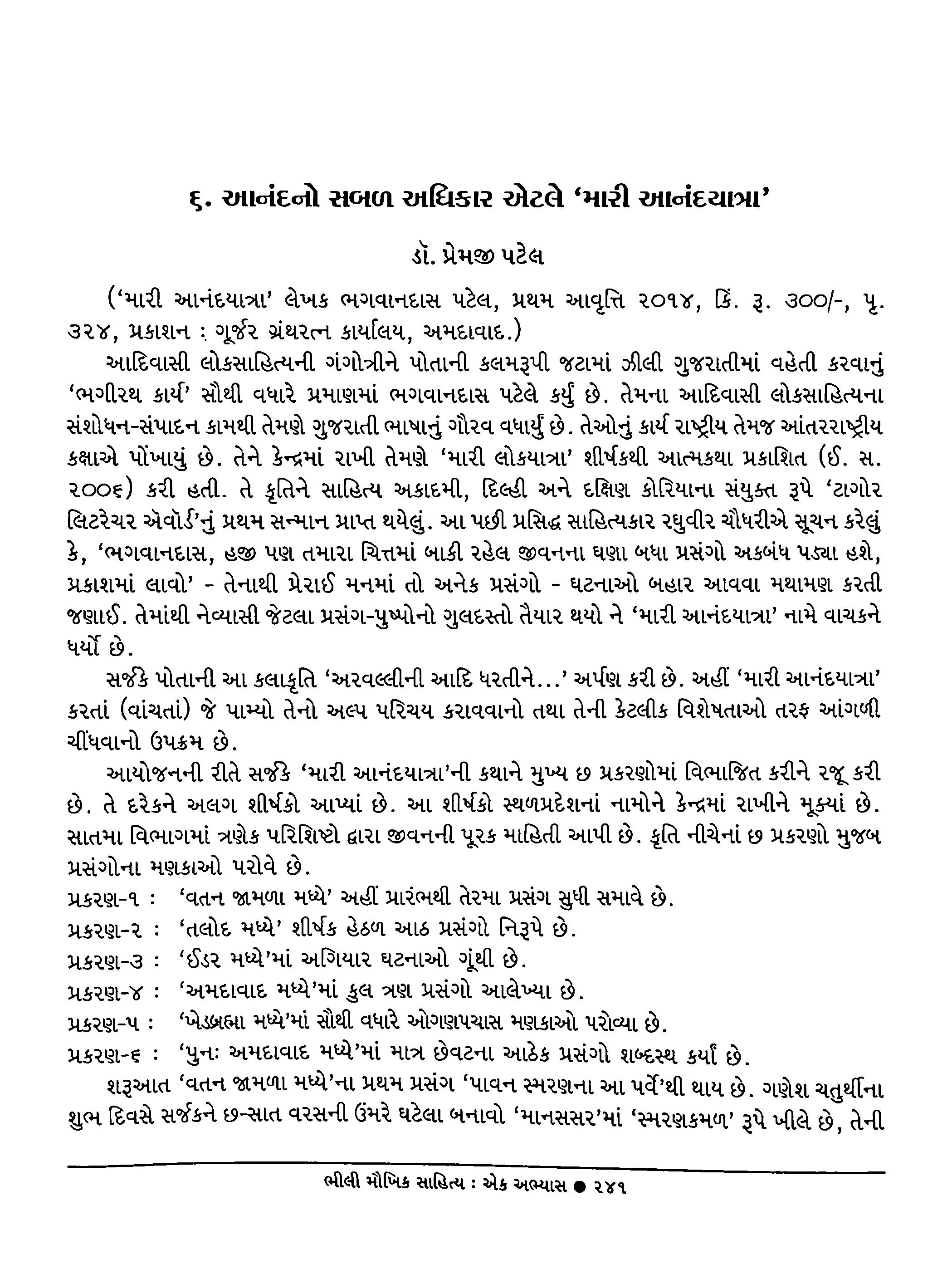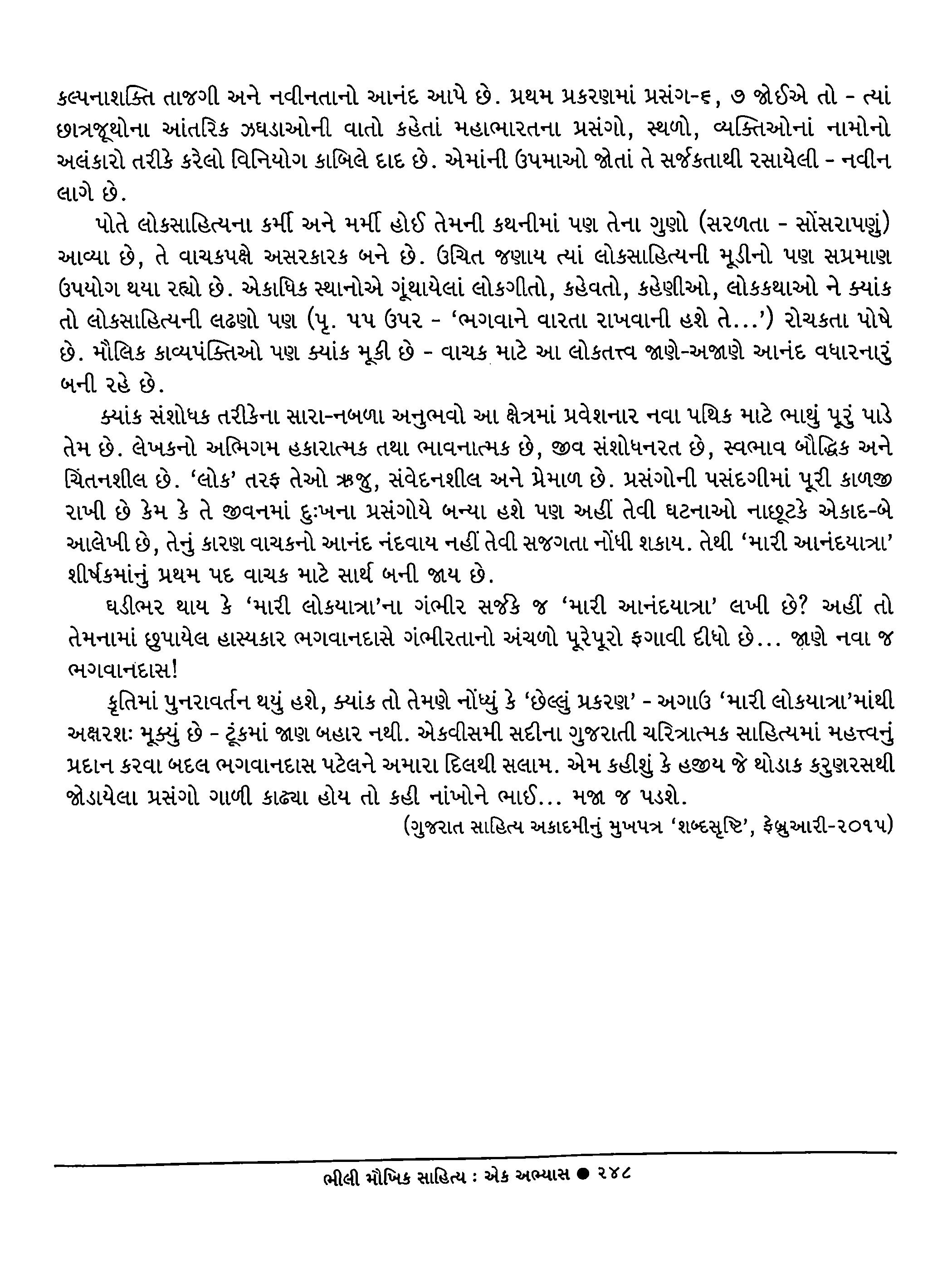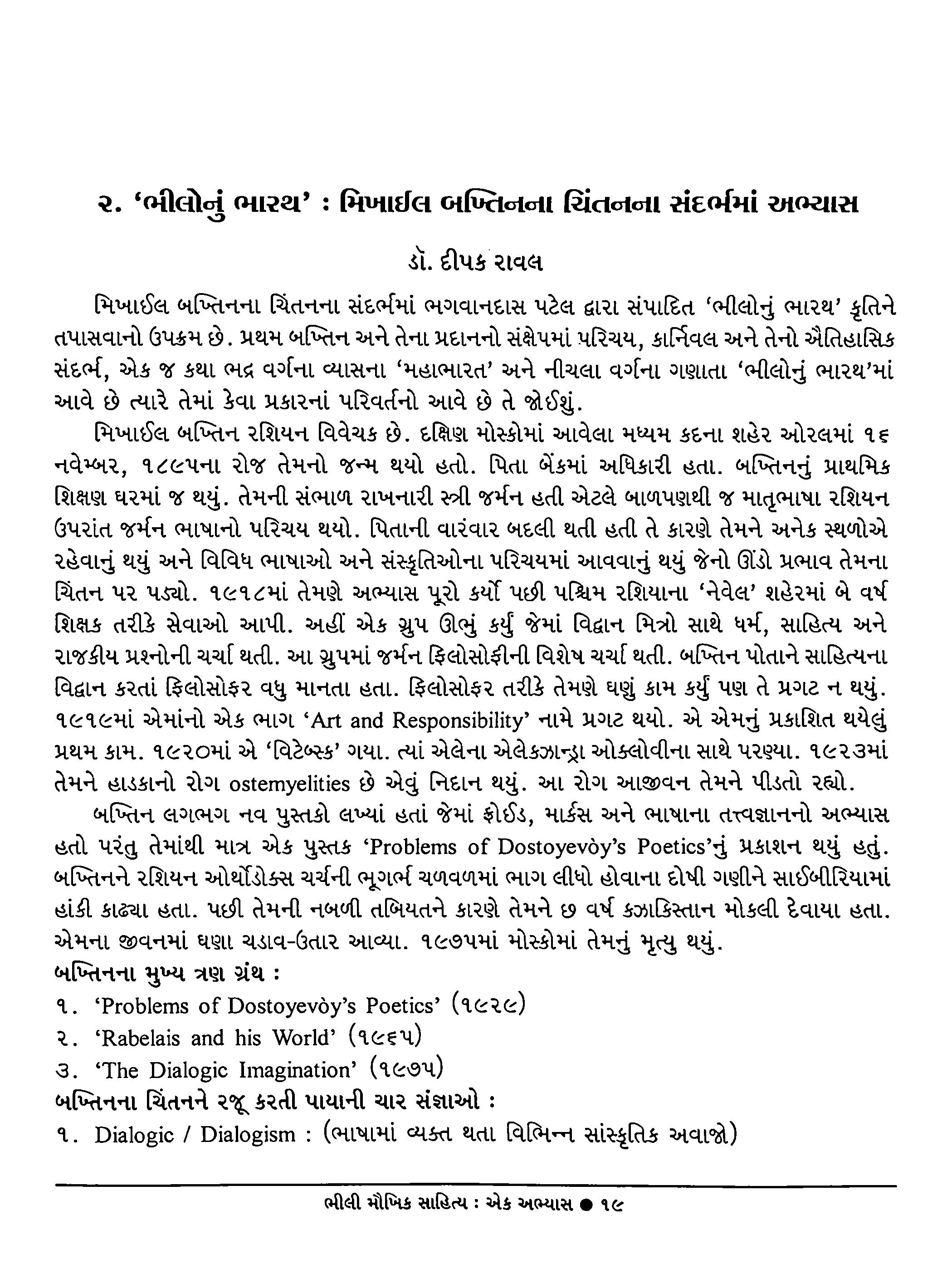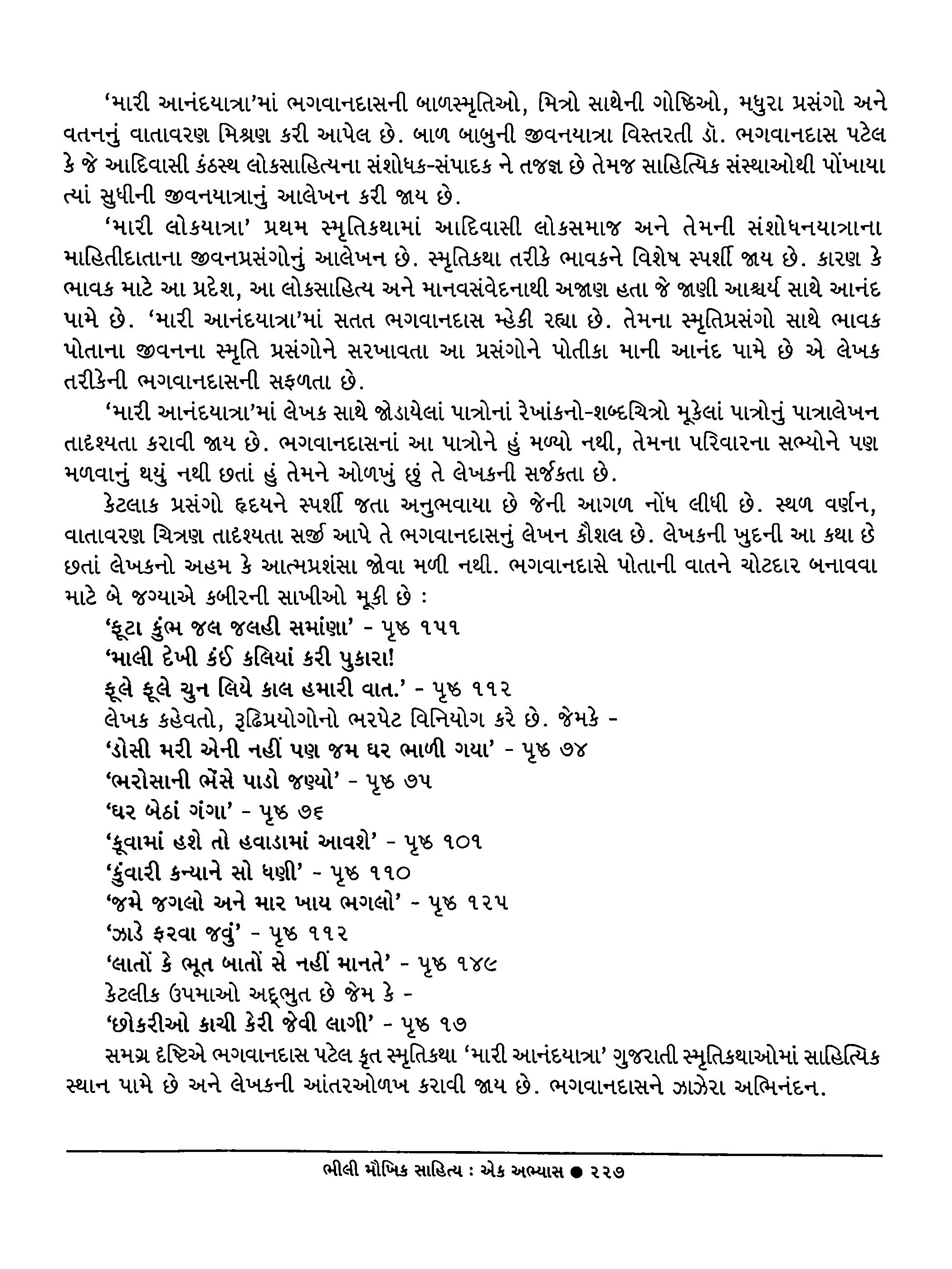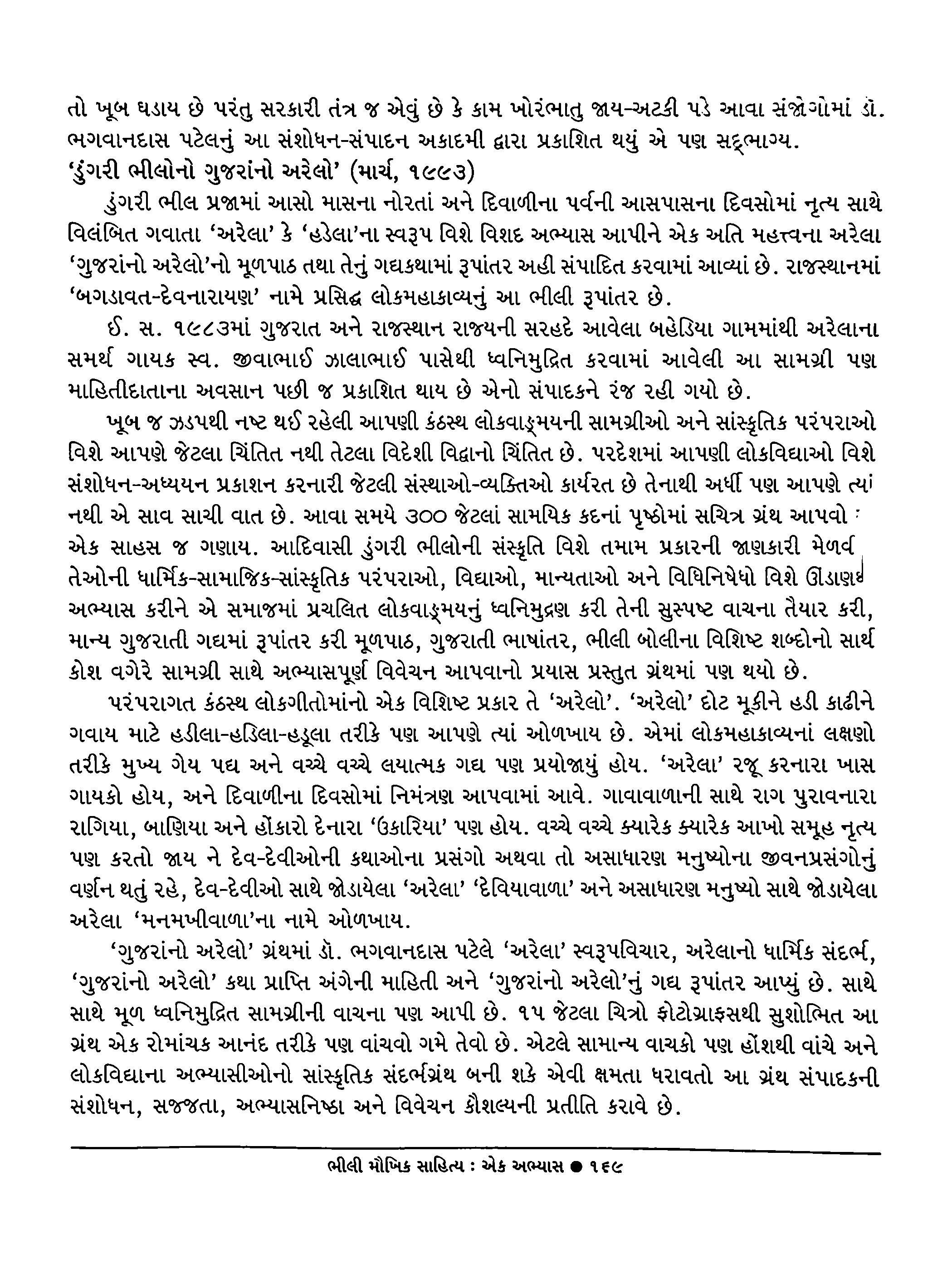 ભીલી મૌખિક સાહિત્ય એક અભ્યાસ (ભગવાનદાસ પટેલ)- દશરથ પટેલ