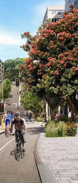 As the world evolves, so do people’s expectations of urban spaces, and Auckland is on a forward journey. A major transformation has taken place here over the last decade: the regeneration of Wynyard Quarter from a bulk liquid storage area closed off to the public into an awardwinning neighbourhood, Downtown has changed from wide souless roads to a native forest of hundreds of trees with places to walk, cycle and sit to connect with the Waitematā on Quay Street and Te Wānanga, connecting with Britomart and Te Komititanga Square, and Queen Street up to Karangahape Road.