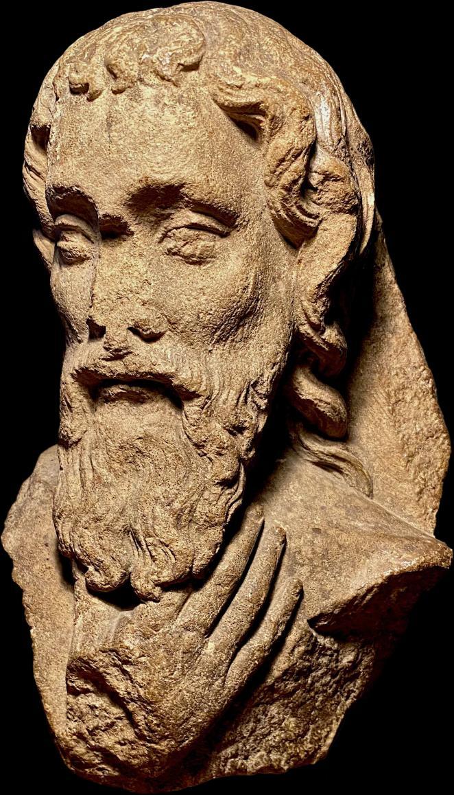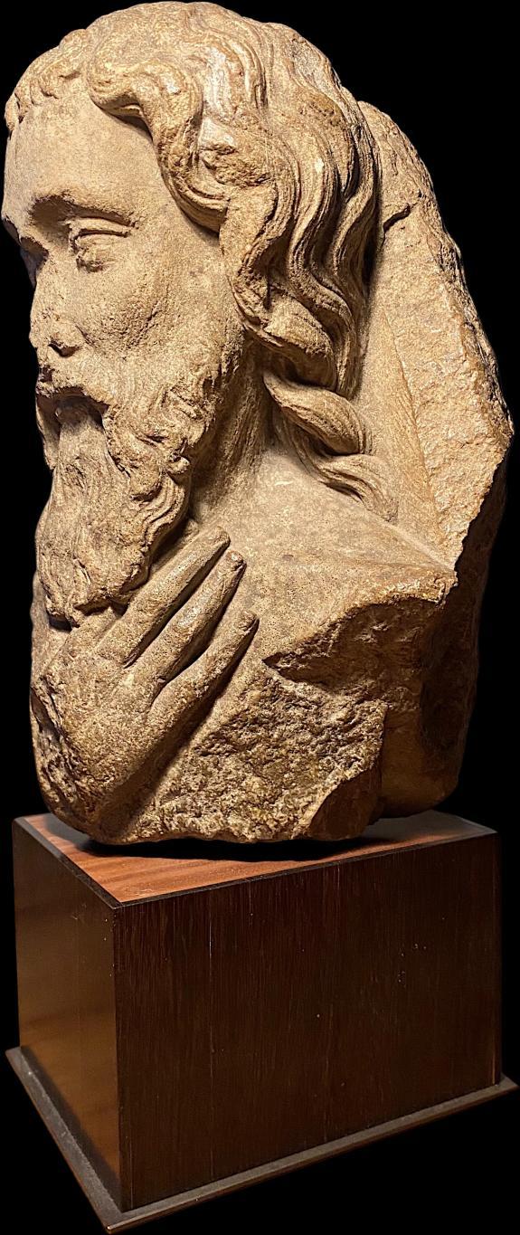 This captivating limestone bust of an apostle showcases an exceptional level of emotional depth and artistic refinement, reflecting the Gothic sculpture style of the 13th century.