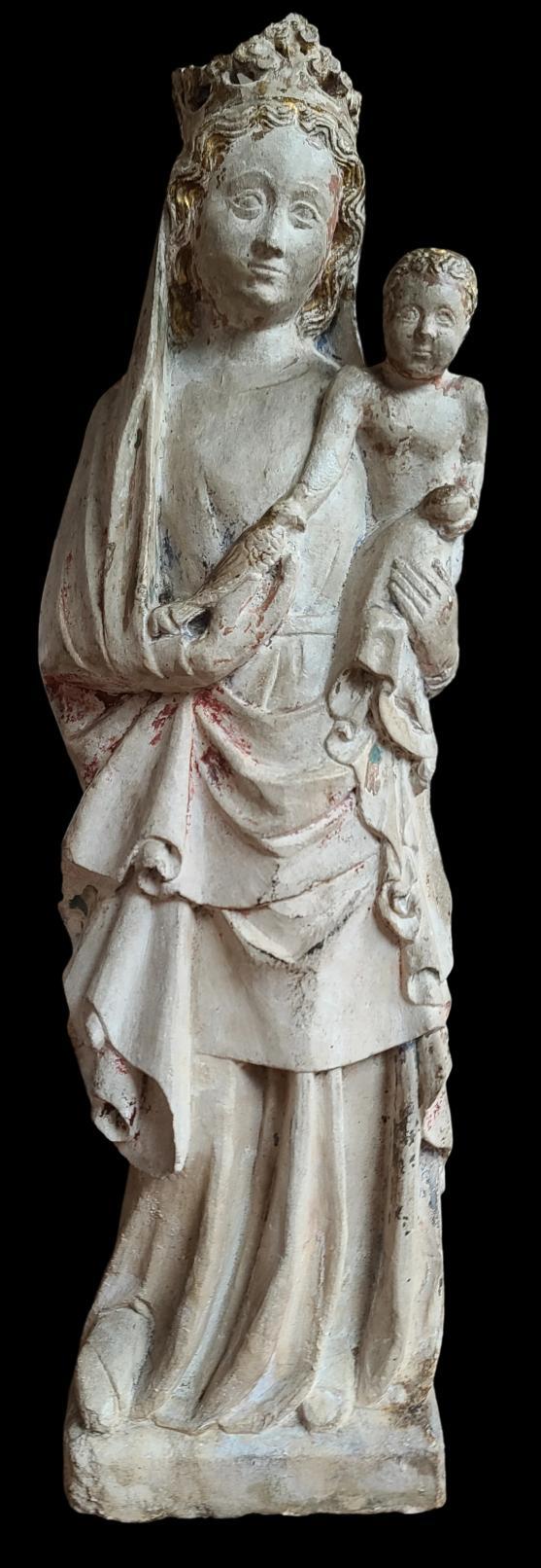 Light and graceful counterpoise of the Virgin. This sculpture illustrates the persistence of the canons of Gothic sculpture from Île-de-France, spanning from the mid-14th century to its later years. Its medium size reflects the popularity of devotional works from the 14th century onwards.