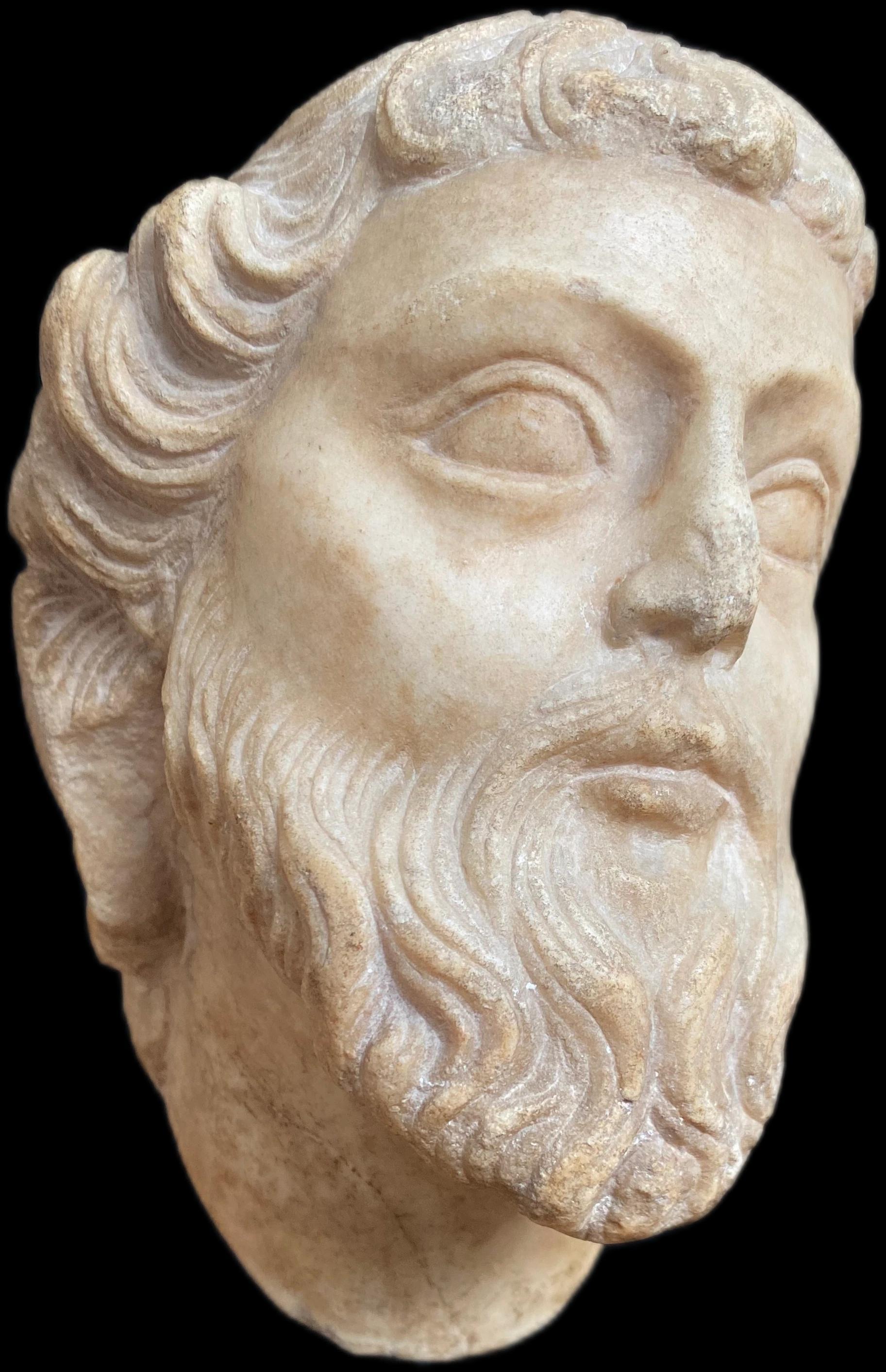 This elegant marble head of a bearded man is a remarkable example of the refined artistry characteristic of the Sienese school of sculpture during the late 13th and early 14th centuries.