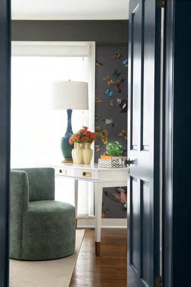 moment she first saw it eight years ago. “I like separate rooms and spaces, versus everything being open, so I was excited that the house had a formal dining room and living room,” she says. The only exception: “I love an open space from the kitchen to the breakfast room, which this house had as well. That’s what drew me to it— having the best of both worlds.”