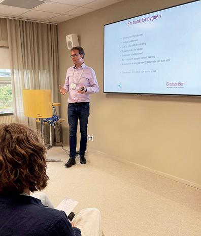 I slutet av maj arrangerade Landsorganisationen Hela Sverige ska Leva Landsbygdsriksdagen, denna gång i Jönköping. Denna samlingspunkt för allt som har med landsbygdsutveckling att göra arrangeras vartannat år. Denna gång medverkade Ekobanken i ett seminarium om finansiering av föreningar på landsbygden. Seminariet genomfördes bl.a. tillsam mans med Mikrofonden som ställer ut säkerheter, och Egnahemsfabriken som är ett av bankens många låneprojekt på landsbygden. Under semina riet blev det tydligt att det för att lyckas på landsbyg den krävs flera källor till finansiering och ett starkt lokalt engagemang.