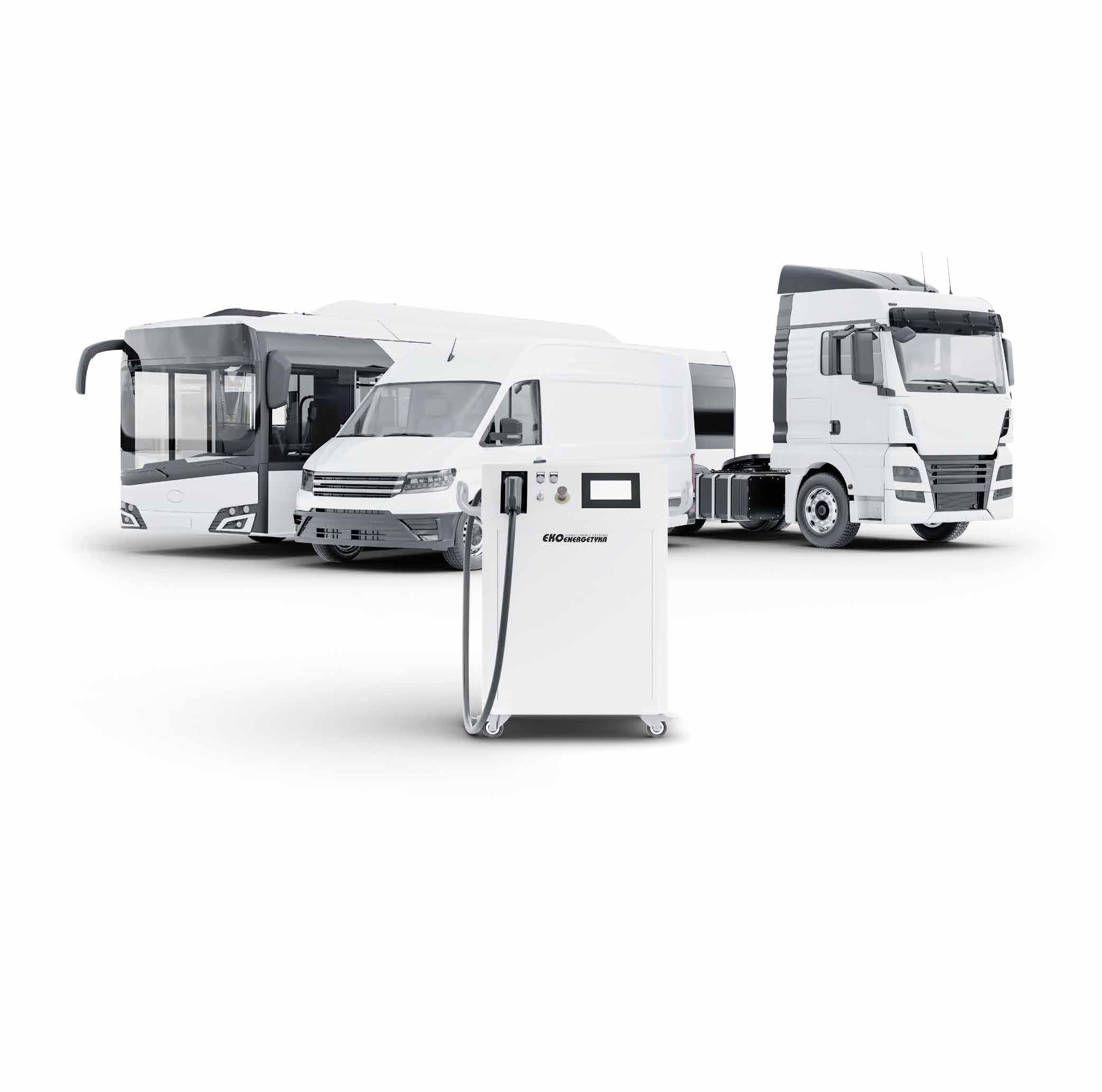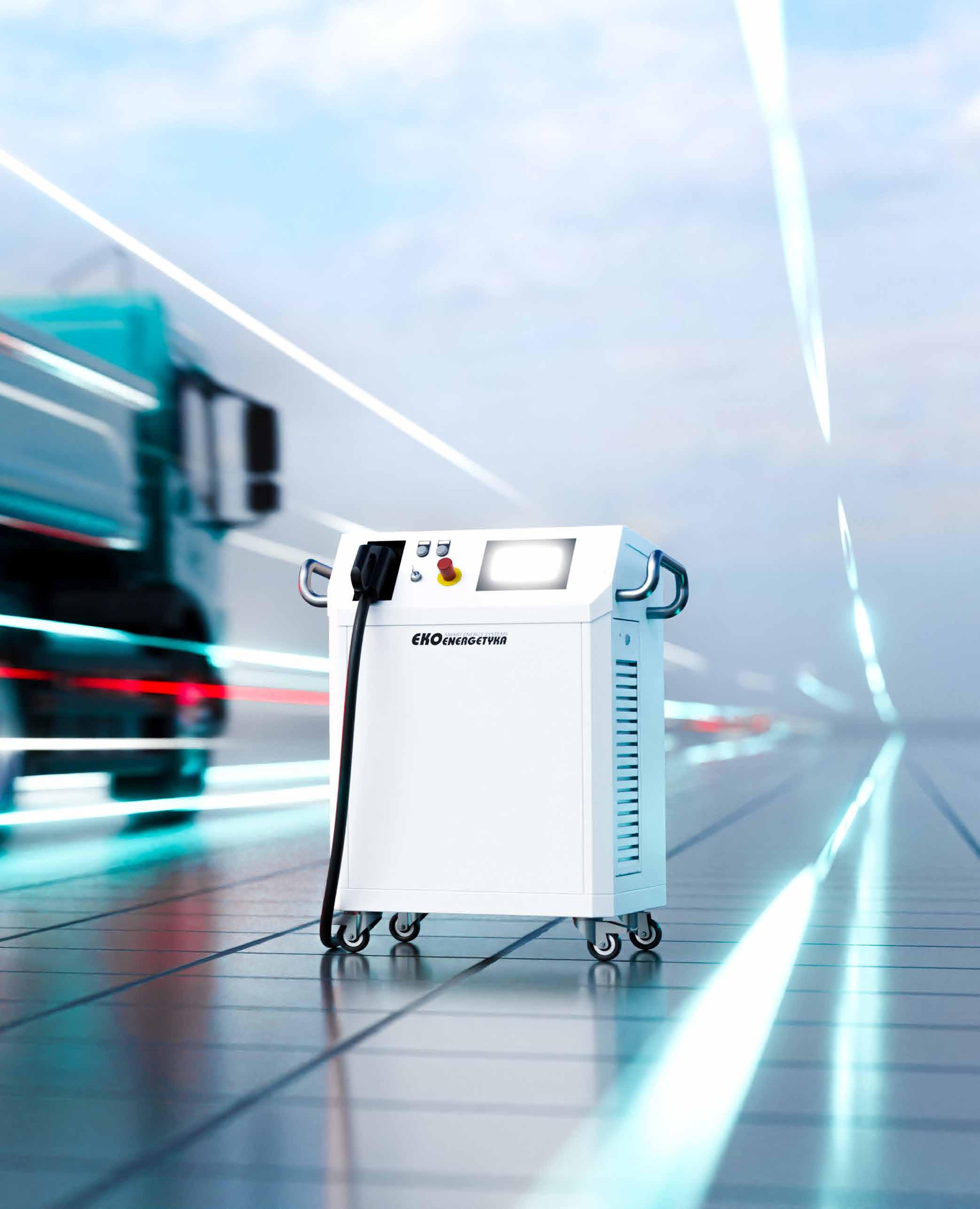Mobile charging stations for high-speed direct current (DC) charging. Available in few power options, these handy and portable devices can be a charging support in emergency situations, but can be also used for charging a vehicle in any situation and location. Flexibly operating in locations with reduced power availability (power outlets with lower rating). Suitable for heavier electric vehicles. The chargers operate independently and no integration with charging service providers is necessary.