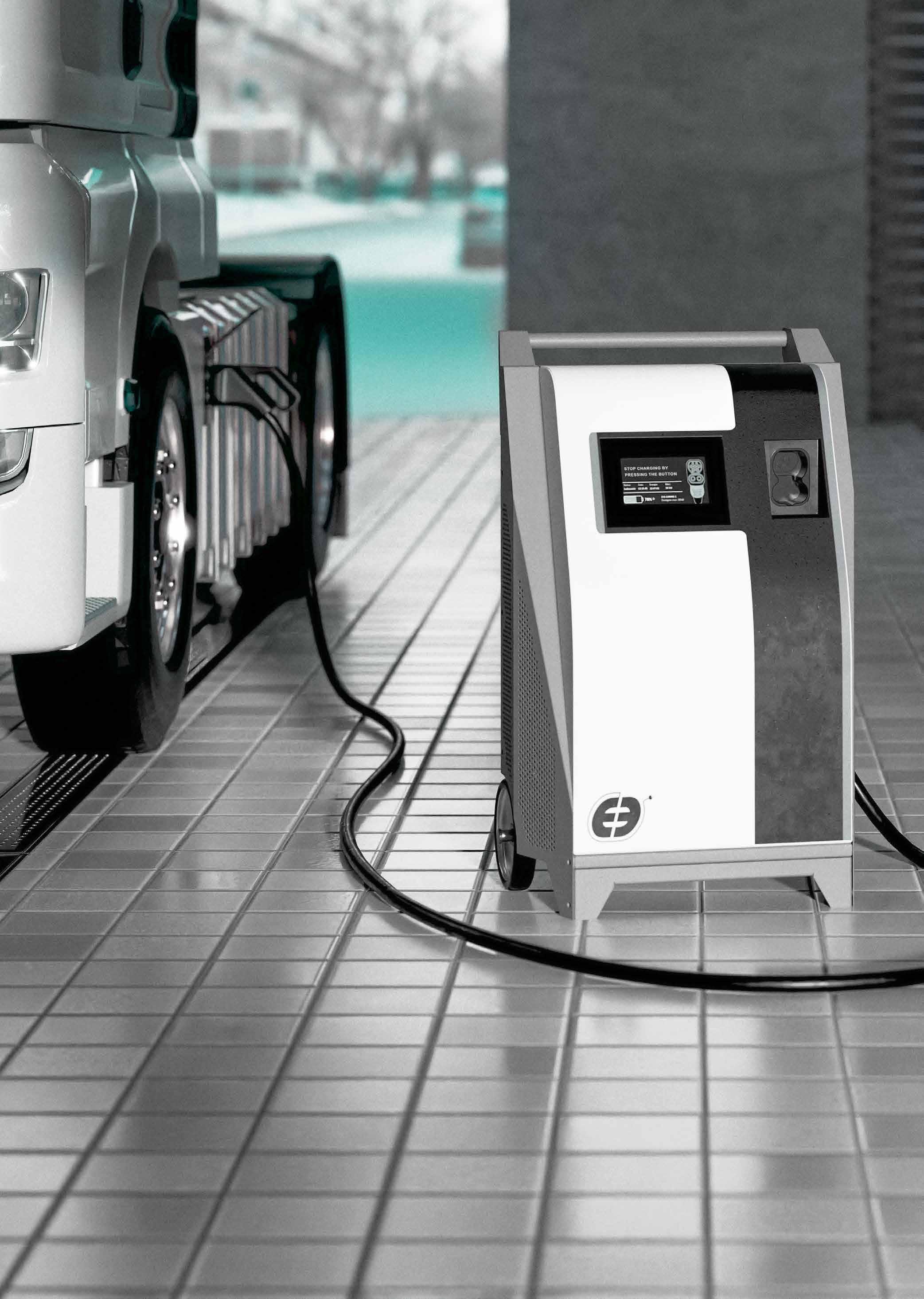 Car repair shops Motor Sport Events Bus depots Logistics parks Vehicle equipment Car washes Power 30 kW Device type MOBILE charging station Power class Fast Charging Connector CCS1 Voltage range 150-1000 V Max. charging current 80 A Plug & Charge ready Compliance with standards Worldwide Compliance with standards North America Available in 2024 EV E-VAN E-BUS E-TRUCK