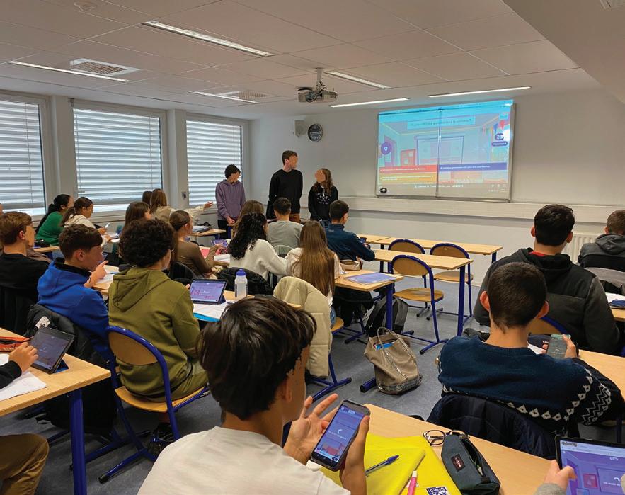 Les ambassadeurs élèves formés passent dans les classes de tous les niveaux. Ils portent des brassards verts pour être identifiés.