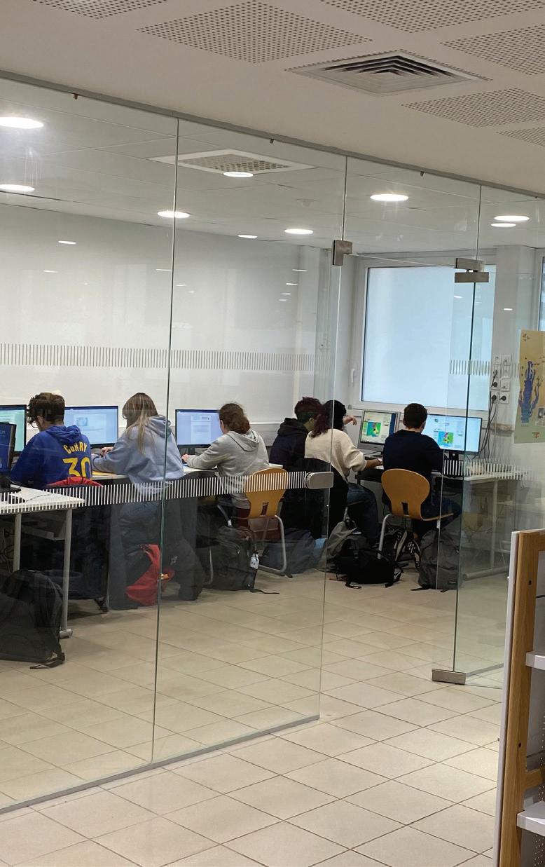 - Deux salles de travail vitrées contenant 10 postes informatiques chacune.