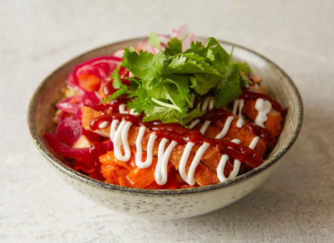 GRAIN BOWL MED CRISPY NOCHICKEN OG TONKATSU SAUCE