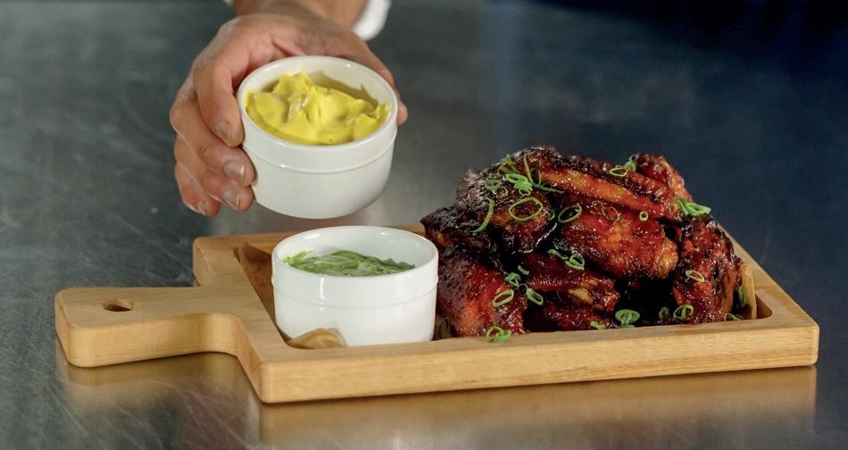 Bland de syltede agurker med Hellmann’s Professional, karrypulver og umamikrydderi.