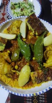 tavaliselt sööki valmistavad. Kuigi ka mehed on head kokad, oskavad leiba ja kuskussi teha, grillida ja salateid valmistada. Ka salatite juures armastavad tuneeslased teravust, nagu näiteks traditsioonilises meschwiya ’s. Selle salati valmistamine on aeganõudev, aga tasub ennast ära: eriti kui tulemuseks on selline roog, mis tuuakse lauale Douzi restoranis Port au Sahara. Seal kokkab beduiin Mohammed ja tema meschwiya on iga kord erinev, olenevalt sellest, millised juurviljad kokku pannakse ja kui pikalt neid grillitakse. Grillitud küüslauk, paprika ja tomatid peenestatakse seejärel ja segatakse kapparite, oliivide, keedetud muna ja tuunikalaga – nii saab kokku imemaitsva eelroa, millel on lisaks muudele aroomidele ka kergelt suitsune nüanss.
