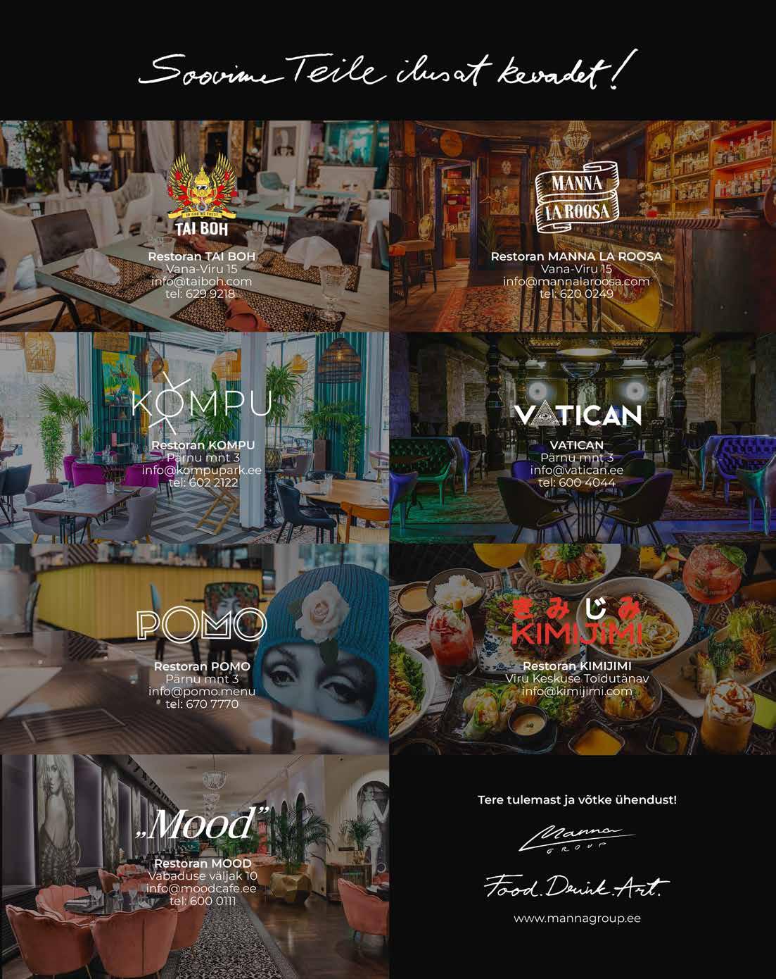 „Oleme teinud inimeste eest ära valiku, mis meie meelest meid kõige paremini iseloomustab. Loomulikult pakume menüü juurde ka veinivalikut, millest iga pokaal on konkreetse toiduga kokku sobitatud. Kuna ka meie veinivalik on pigem pisut teistsugune kui mujal, siis laiendame maitseelamust veelgi. Degustatsioonimenüü seltsis saab veeta ühe väga põneva õhtu,“ mainib Veskimäe.