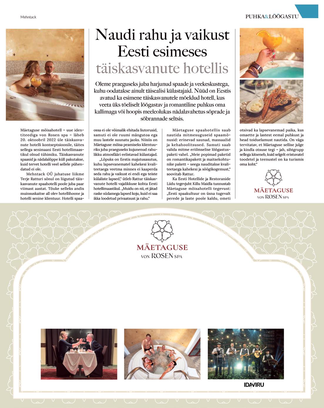 TEKST: Martin Hanson FOTOD: ShutterstockKui vanasti oleks pidanud heast toidust rääkides jätma spaapuhkust planee rides paljud Eesti piirkonnad välja, siis nüüd võib julgelt minna „kogupaketti“ nautima igasse Eestimaa nurka.