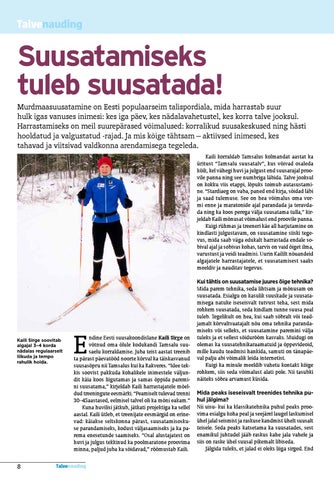 ndine Eesti suusakoondislane Kaili Sirge on võtnud oma õlule kodukandi Tamsalu suusaelu korraldamise. Juba teist aastat treenib ta pärast päevatööd noorte kõrval ka täiskasvanud suusasõpru nii Tamsalus kui ka Rakveres. “Idee tekkis soovist pakkuda kohalikele inimestele väljundit käia koos liigutamas ja samas õppida paremini suusatama,” kirjeldab Kaili harrastajatele mõeldud treeningute eesmärki. “Peamiselt tulevad trenni 30–45aastased, eelmisel talvel oli ka mõni eakam.” Kuna huvilisi jätkub, jätkati projektiga ka sellel aastal. Kaili ütleb, et treenijate eesmärgid on erinevad: käiakse seltskonna pärast, suusatamisoskuse parandamiseks, kodust väljasaamiseks ja ka parema enesetunde saamiseks. “Osal alustajatest on huvi ja julgus tekkinud ka poolmaratone proovima minna, paljud juba ka sõidavad,” rõõmustab Kaili.