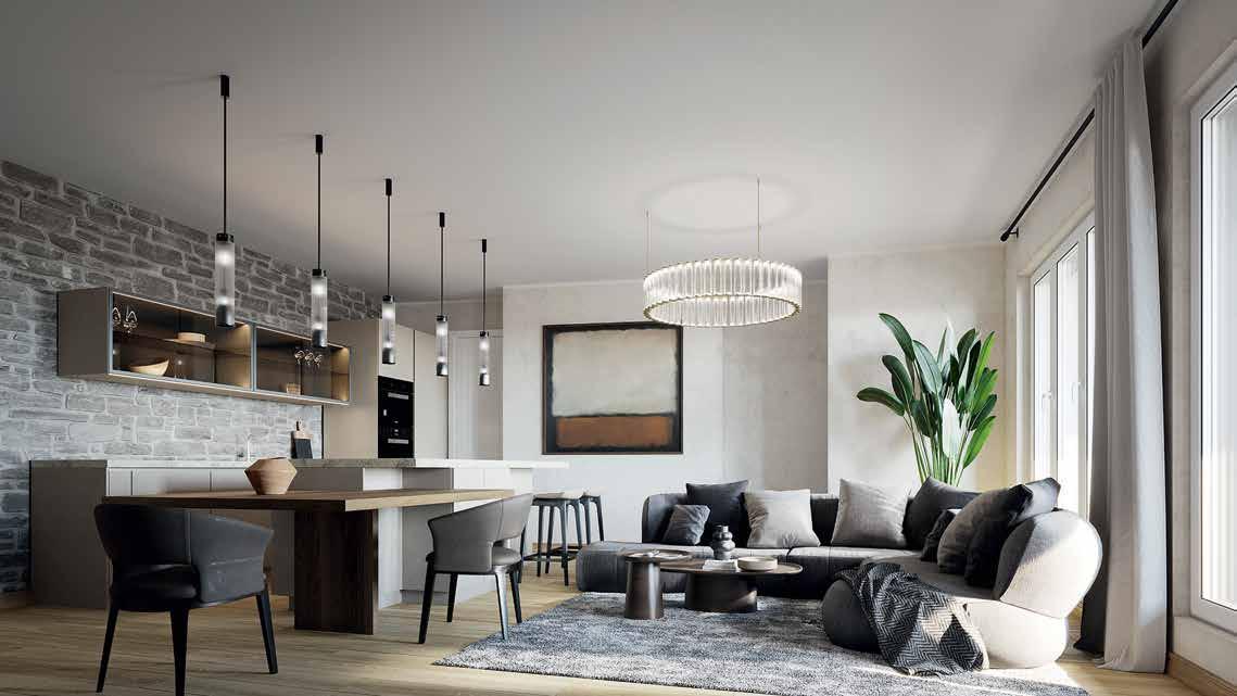 isegi selline olukord, kui turgu peaks tabama negatiivseimate stsenaariu mite korral ligi 30-protsendiline hin nalangus, meid tagasi pelgalt 2021. aasta sügisesse perioodi. Tema sõ nul on likviidsemaks muutunud just madalamahinnalised varad ja pakku mishindade langetamine on juba üha enam silma hakanud – seda eeskätt eksklusiivsemate varadega piirkon dades, nagu Kesklinn ja Põhja-Tallinn, ning kõrgemahinnaliste, üle 700 000 eurot maksvate üksikelamute puhul. Rutniku hinnangul on üks muljet avaldavamaid projekte Volta kvartali arendus. „Voltas on nii kortereid kui ka ridaelamu moodi kodusid, kus oma isiklik hooviala ja privaatsed terrassid. Seal on uskumatult kõrged, 6,4-meetri sed laed ja efektsed ruudustatud kaar-