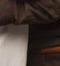 Mu isiklik lemmik on riidekapp, kus lugusid salvestan. Algse korteri pla neeringu järgi pidi magamistuba jao tuma kaheks, ühel pool garderoob ja teisel küljel voodi, ent jätsime vahe seina ehitamata ning ühte nurka läks lihtsalt seinast seina ulatuv riiulite süs teem riiete jaoks. Sealt jätsime pool kappi meelega maast laeni tühjaks, et sisse mahuks statiiv mikrile.