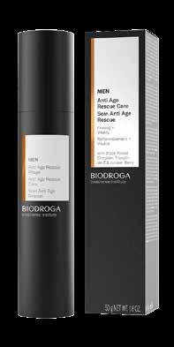 Biodroga Men Anti Age Rescue Care on pinguldav ja elujõudu andev näokreem, mis rahustab nahka pikaajaliselt, sisaldades tripeptiid 5kompleksi, mis tõstab märgatavalt naha kollageeni tootmist, kaitstes samal ajal kollageeni lagunemise eest. Kortsujooned vähenevad märgatavalt ja nahapind muutub ühtlasemaks ning pehmemaks. Kadakamari annab nahale värskuse, toniseerib, on poore ahendava ning rasu kontrolliva toimega. Testis reklaami projektijuht Kevin Põld : „Olen seda näokreemi juba mõnda aega kasutanud ja pean ütlema, et tulemus on üllatavalt hea. Kreem on kerge ja imendub kiiresti, mis on minu jaoks suur pluss. Nahk tundub siledam ja niisutatum, eriti hommikuti. Lõhn on meeldiv, kuid mitte liiga tugev. Hea igapäevane vananemisvastane kreem, mida on lihtne kasutada. Soovitan!“