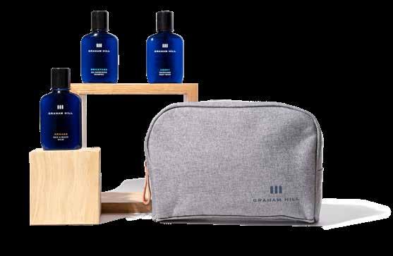 Komplekt Graham Hill Travel Set on ideaalne kingitus igale mehele, kes hindab kvaliteetset hoolitsust ja praktilisust. Stiilne kosmeetikakott sisaldab reisisuuruses tooteid, mis tagavad mugava kasutuse igal ajal ja igal pool. Komplektist leiad Arnage’i kreemja näo ja habemepalsami, mis niisutab ja kaitseb nii nahka kui ka habet; Brickyardi šampooni, mis annab juustele puhtuse ja pehmuse neid kuivatamata; Abbey šampoon dušigeeli, mis hoiab argipäeva askeldustes värskena.