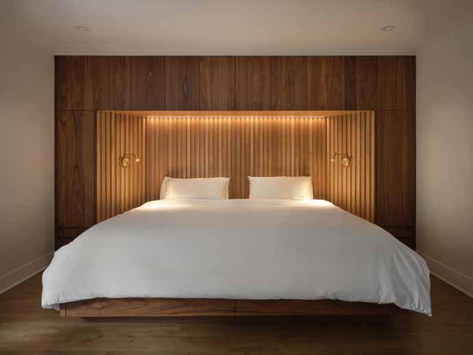 on puhtad, detailid tagasihoidlikud, võimaldades ruumil toetada optimaalset funktsionaalsust ja samas mitte lasta ununeda kodu algsel klassikalisel atmosfääril. Söögitoa valgusti disain ja magamistoa eritellimusel valminud voodi –koos integreeritud pistikute ja panipaikadega – peegeldavad arhitektuurset mõtteviisi igal tasandil.