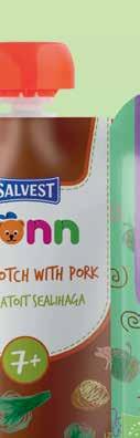 Mitmeviljapuder õuna ja kaneeliga maitseb nagu värskelt küpsetatud õunakook – pehme ja täis koduseid maitseid. Makaroni-juusturoog veiselihaga on kergelt tükiline ja heaks valguallikaks. Sisaldab Cheddari juustu, veiseliha, makarone ja köögivilju. Kuna selles eas on laps aktiivsem, on roog suurema neto- ja energiasisaldusega. Ühepajatoit sealihaga on kodune, õrna tekstuuri ja maheda maitsega. Toidud on loodud koostöös lastearst Reet Raukasega.