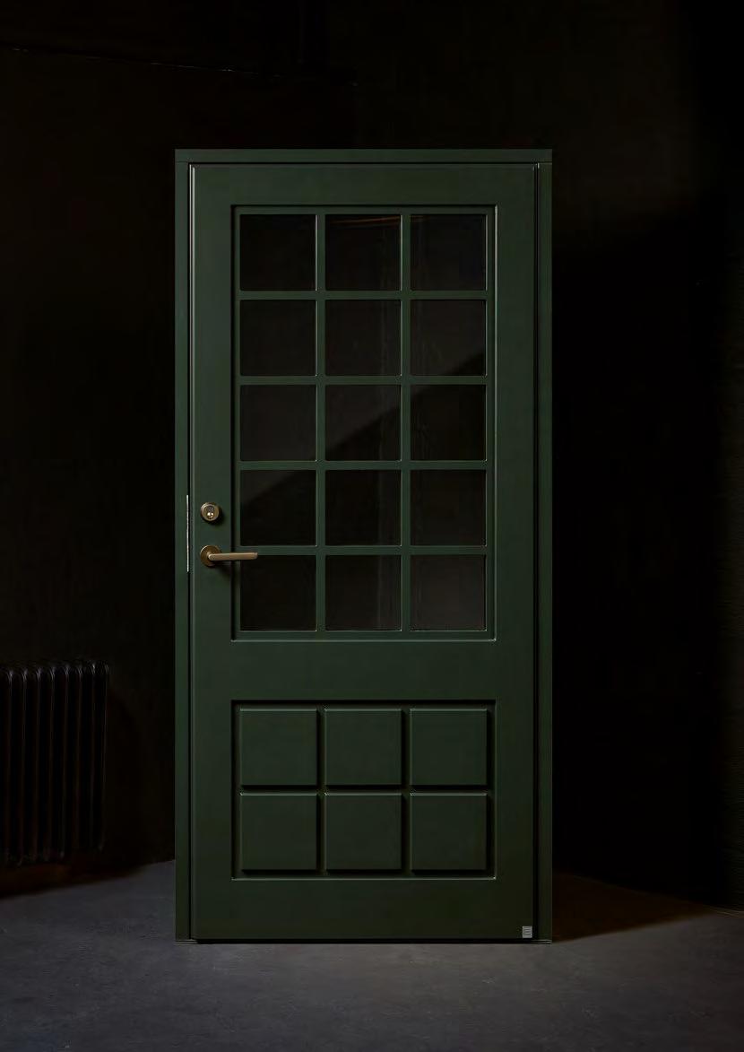 “Inspirationen kommer från den klassiska spegeldörren som i sin grundstruktur ger möjligheter till stor variation. Genom en stiliserad detaljbearbetning har vi skapat en dörr som ska passa i en såväl klassisk som mer modern miljö. Genom olika grad av transparens förändras dörren i sin karaktär och funktion, från den helt täta till den med stora ljusinsläpp.” - Andreas Sture, White Arkitekter.