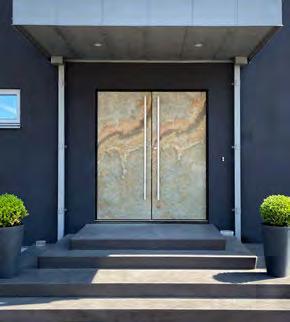 Ytterdörrar med äkta sten skapar ett effektfullt intryck på en modern entré. Ytan har ett tunt lager av skiffersten som är unik för varje dörr. Ytorna är väderbeständiga och finns i tre olika typer av sten. Isolering och prestanda är lika bra som på vårt övriga sortiment av ytterdörrar.