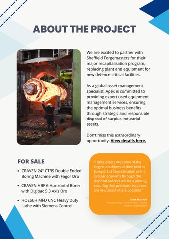 We are excited to partner with Sheffield Forgemasters for their major recapitalisation program, replacing plant and equipment for new defence-critical facilities.