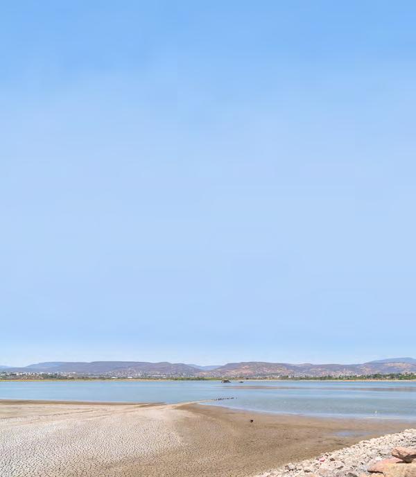 diversas especies de aves como gansos, patos, garzas y gallaretas; sin embargo, el pasto amarillo y seco que rodea a la presa ofrece un paisaje árido, que resalta la importancia de cuidar el agua, especialmente en esta temporada de calor.