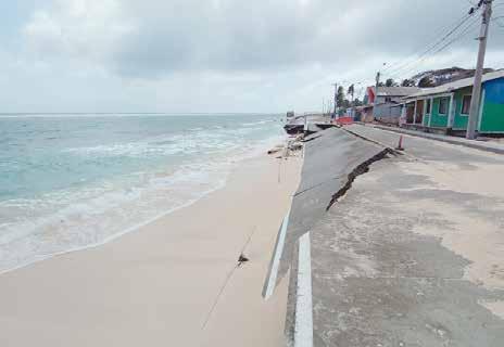 pérdida de playas. Un ejemplo de esto, es lo que por años hemos observado de manera más evidente en el sector sur de San Luis, al sur de Sound Bay, el Decameron San Luis, el conocido “Bar de Kela” y otras zonas al sur de la isla, donde las playas se han reducido o desaparecido, viviendas de la comunidad Raizal han sido destruidas, y la carretera Circunvalar también se ha visto afectada y cerrada en múltiples ocasiones.