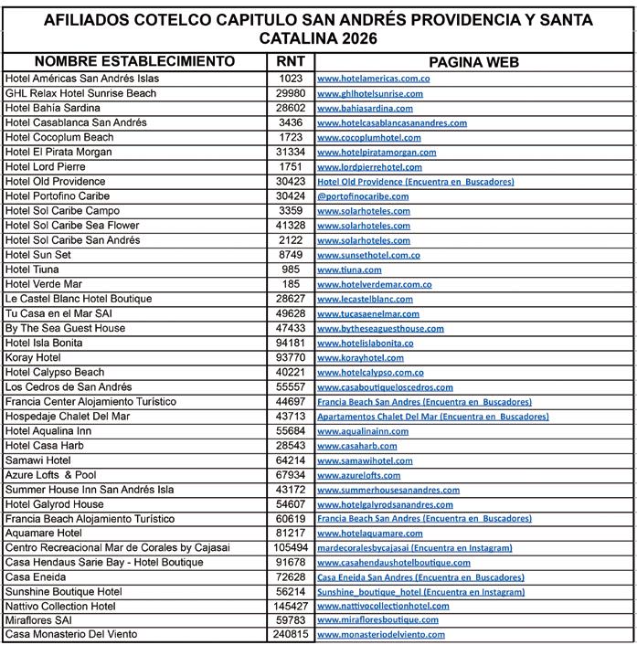 mara de Comercio de San Andrés y Providencia.